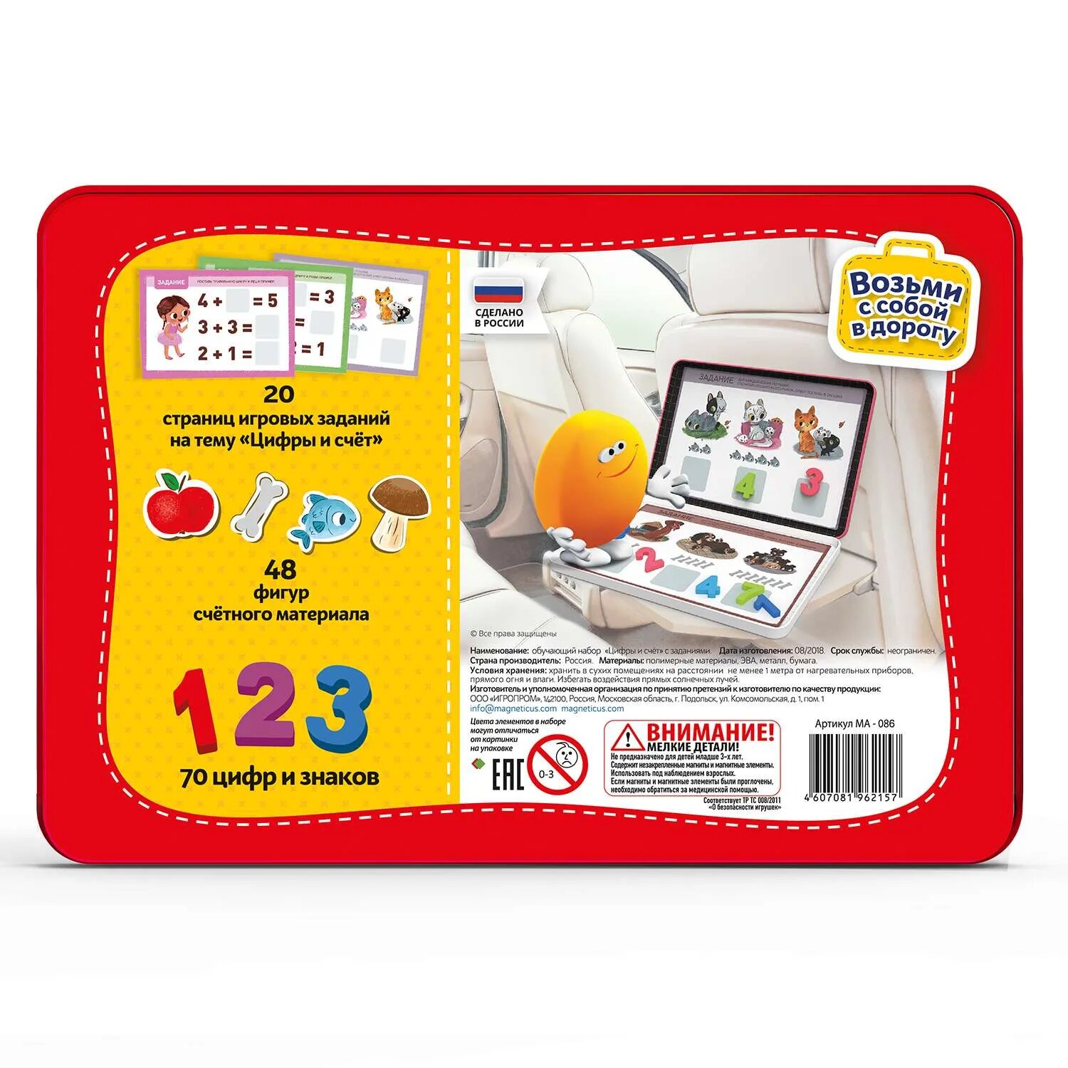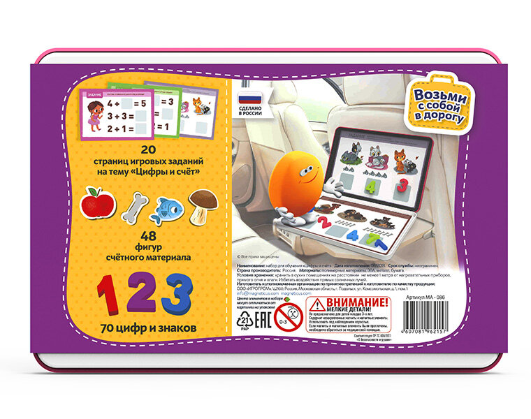 Состав: 25 цифр, 30 игровых заданий, счетный материал - 40 магнитных элементов
