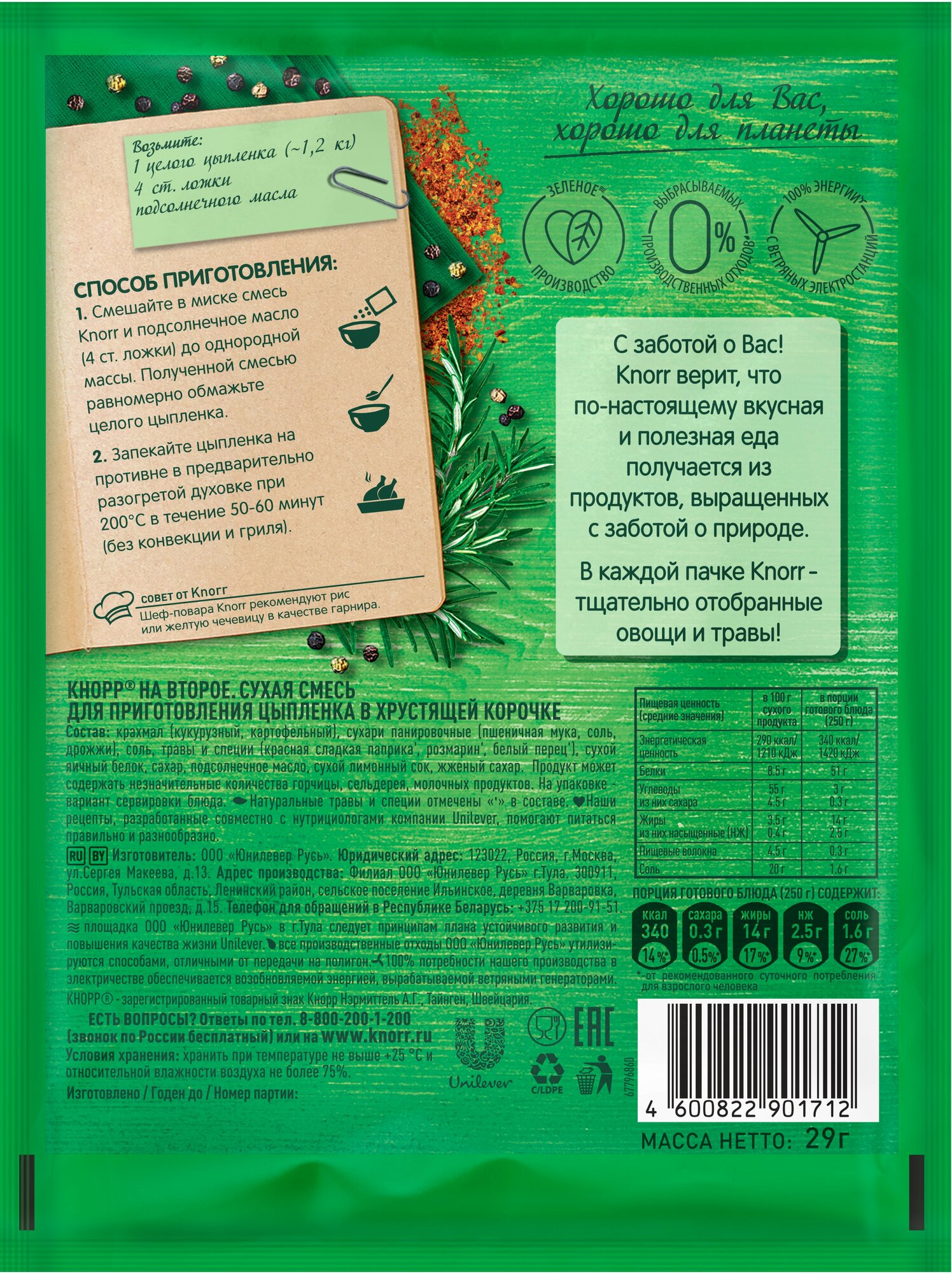 Что выбрать для ужина в кругу семьи: нежную грудку, сочные бедрышки или ароматные крылышки – и как угодить всем близким – задача непростая! Шеф-повара Knorr предлагают вам впечатлить всю семью и без лишних усилий приготовить целого цыпленка! Без консервантов. Без добавления глутамата натрия. Без красителей.