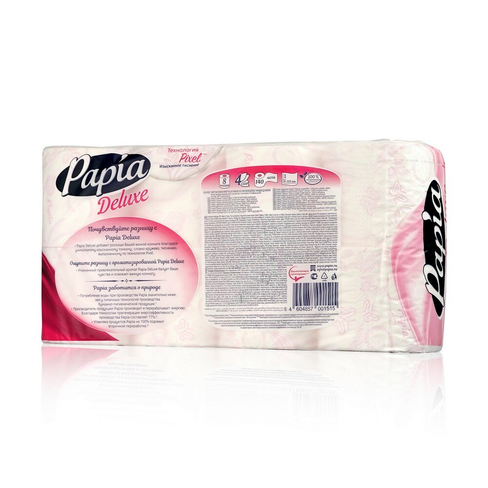 Туалетная бумага Papia Deluxe Paradiso dei Fiori, четырехслойная парфюмированная с тиснением и перфорацией.