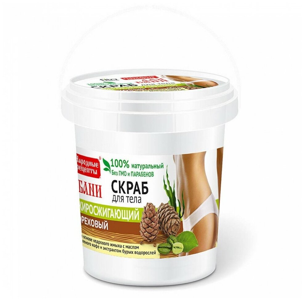 Скраб для тела "Народные рецепты" ореховый жиросжигающий 155мл (МФ144245610)