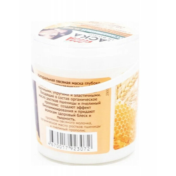 Натуральная овсяная маска глубоко питает и восстанавливает структуру поврежденных волос, делает их прочными, упругими и эластичными. Входящие в состав органическое масло ростков пшеницы и пчелиный прополис создают эффект био-ламинирования и придают волосам здоровый блеск и пышность.