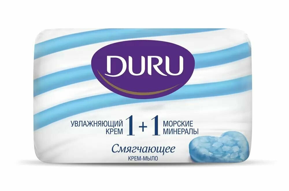 Ежедневное использование мыла Duru 1+1 позволит сохранить естественную красоту и здоровье кожи. Мыло приятного светло-голубого цвета с белыми полосами, экономично в использовании, с приятным ароматом, не размокает, отлично пенится, не сушит кожу, благодаря входящему в состав вазелиновому маслу.