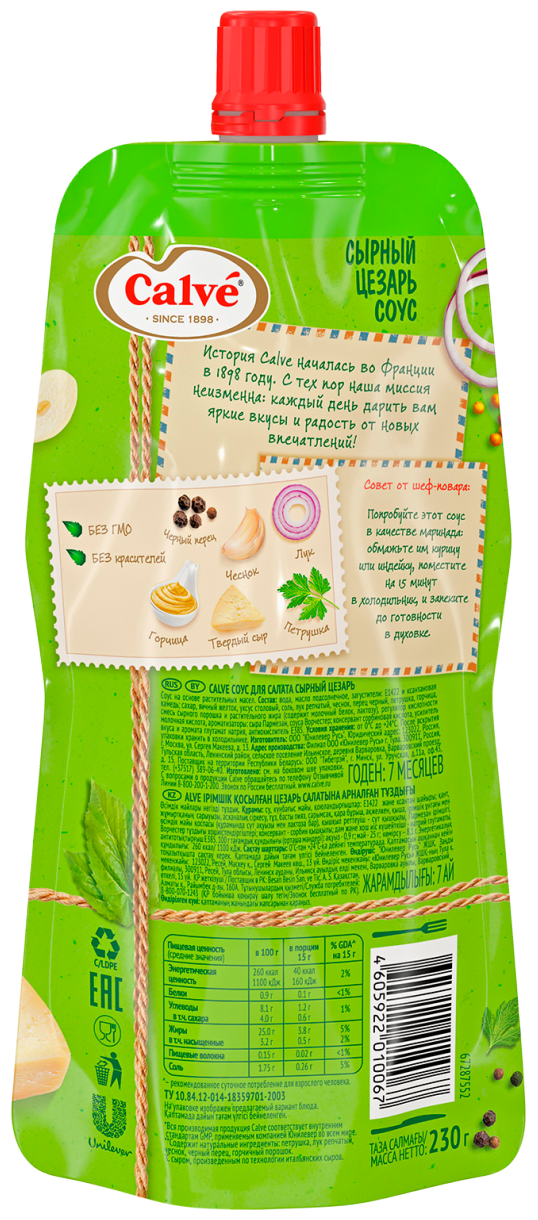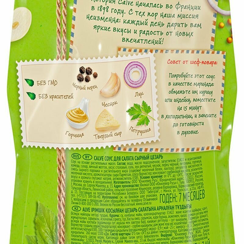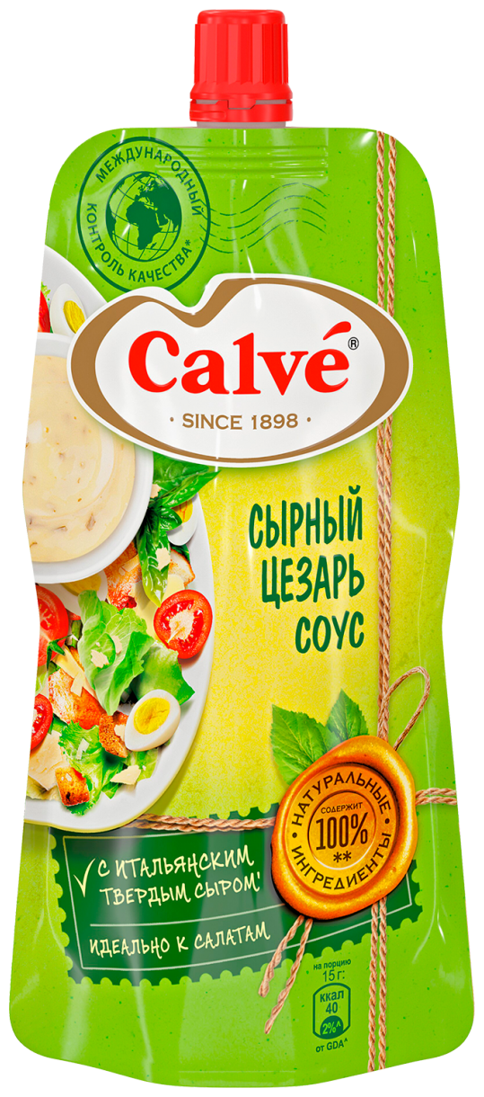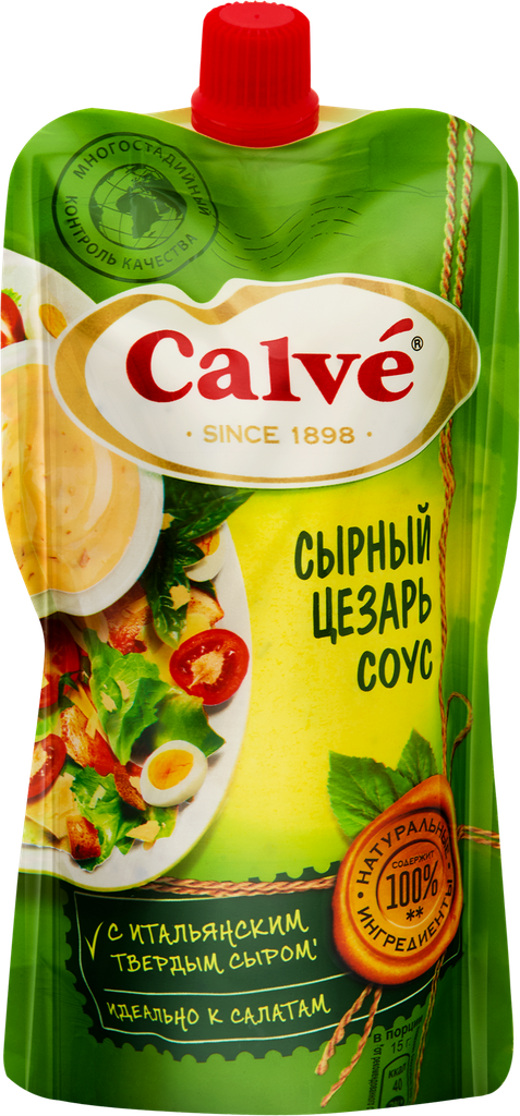 Главное открытие итальянской кухни в XX веке, салат «Цезарь», просто невозможно представить без знаменитого соуса. Calve «Сырный Цезарь» – это сливочный вкус в сочетании с ароматным сыром и специями. Он отлично подходит и для других салатов из овощей и курицы.