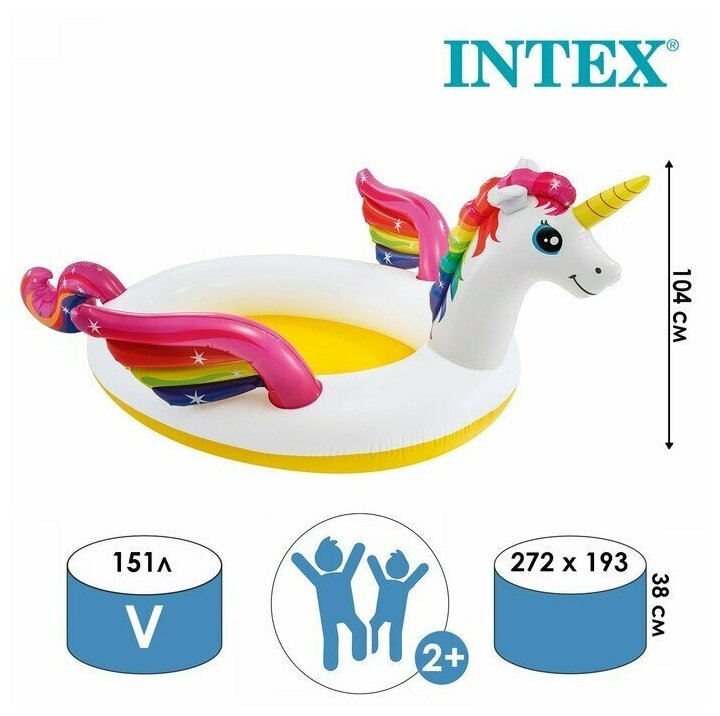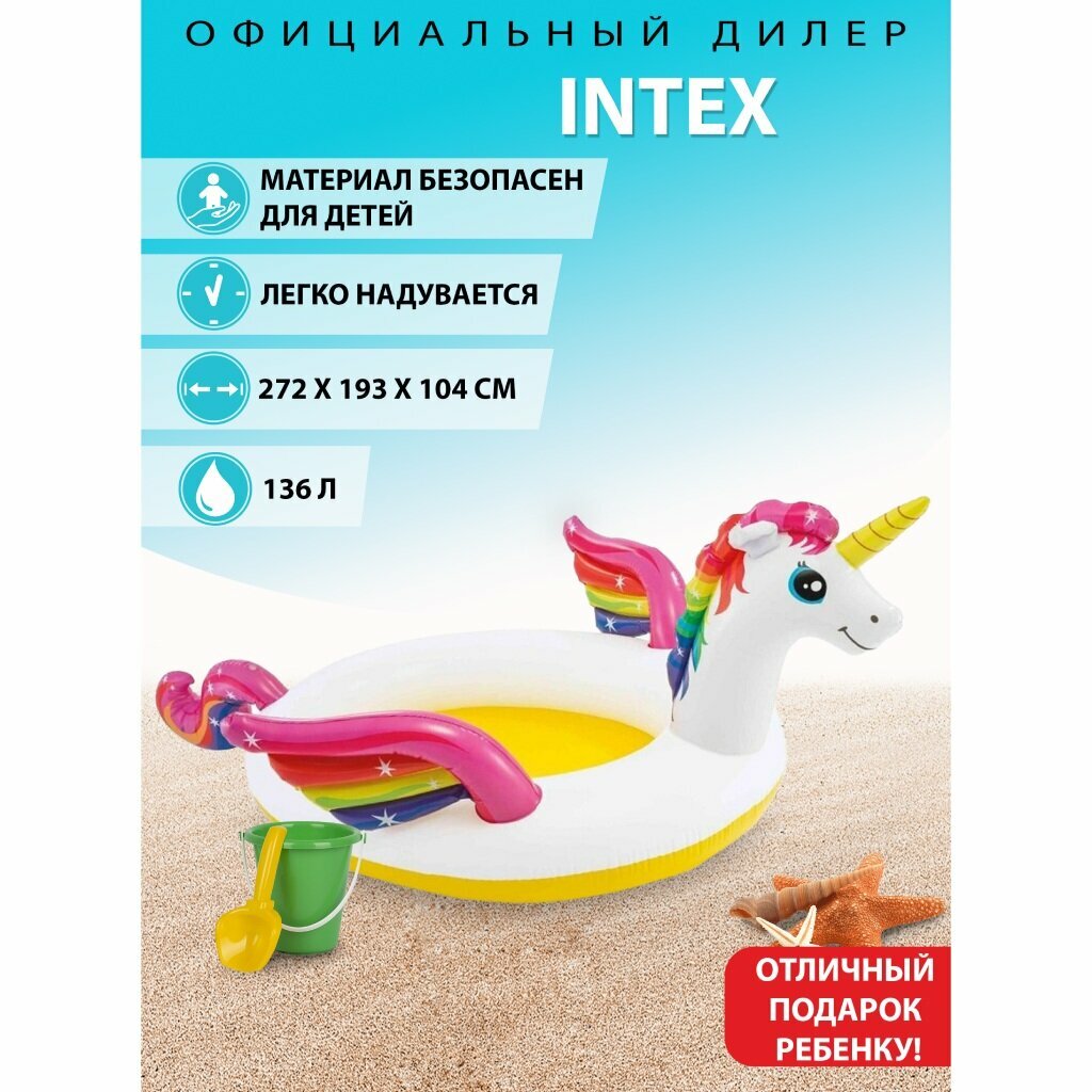 Детский бассейн Intex "Единорог" с фонтаном 272х193х104см Детский надувной 272x193x104см "Волшебный единорог" с распылителем, 165л, от 2 лет (белый)