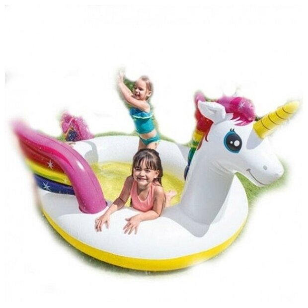 Сервис сравнения цен СкидкаГИД предлагает сравнить цены на товар «Детский бассейн Intex "Единорог" с фонтаном 272х193х104см Детский надувной 272x193x104см "Волшебный единорог" с распылителем, 165л, от 2 лет (белый)»