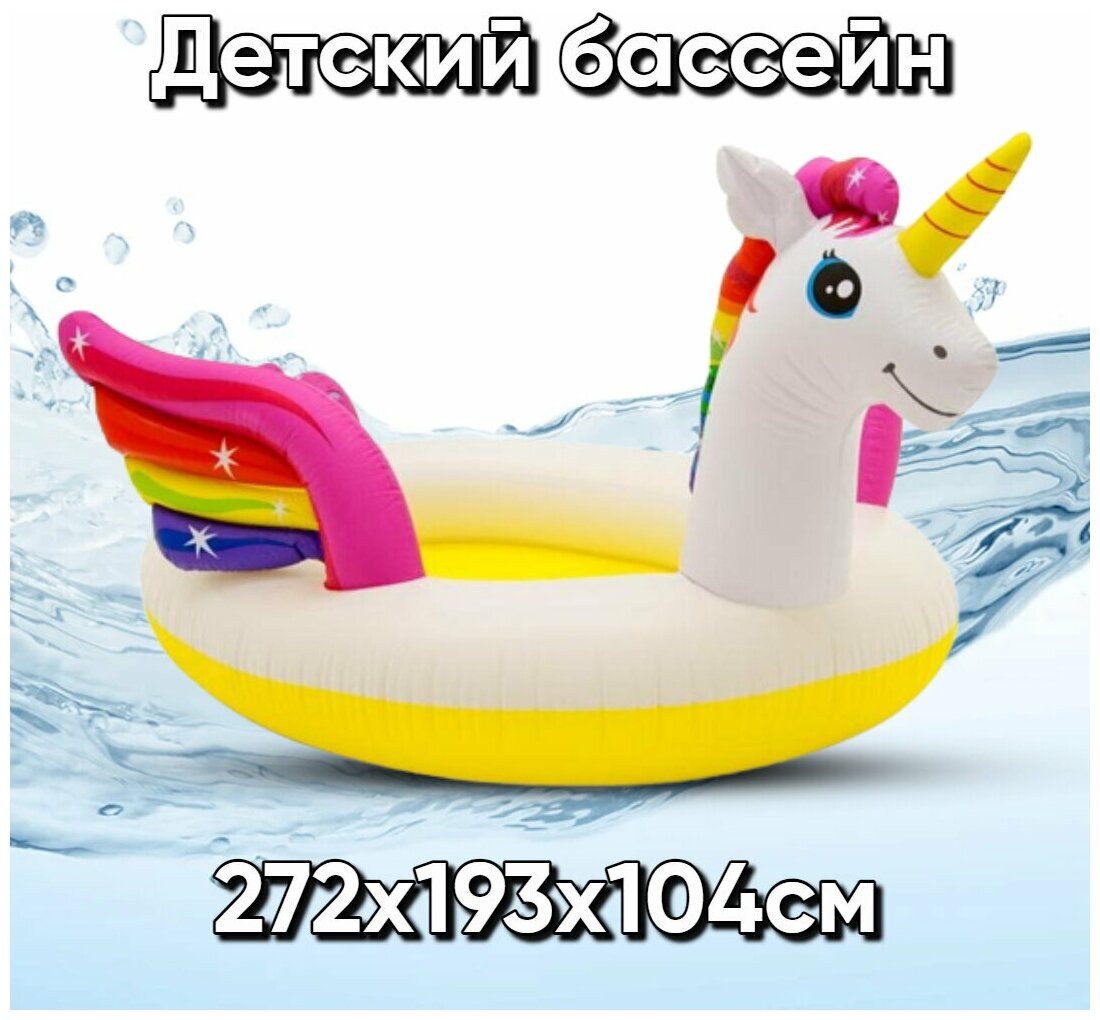 Модель: Детский надувной 272x193x104см "Волшебный единорог" с распылителем, 165л, от 2 лет (белый)