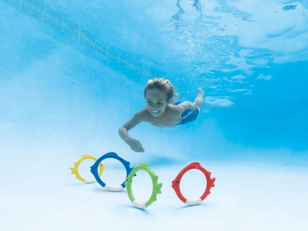 Цветные кольца применяются для обучения ребёнка подводному плаванию, развивают интерес к воде. Резиновые кольца с утяжеленными вставками легко устанавливаются на дно бассейна и могут быть использованы в качестве целей для ныряния.