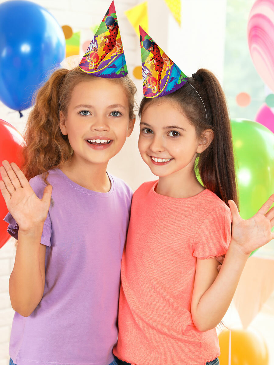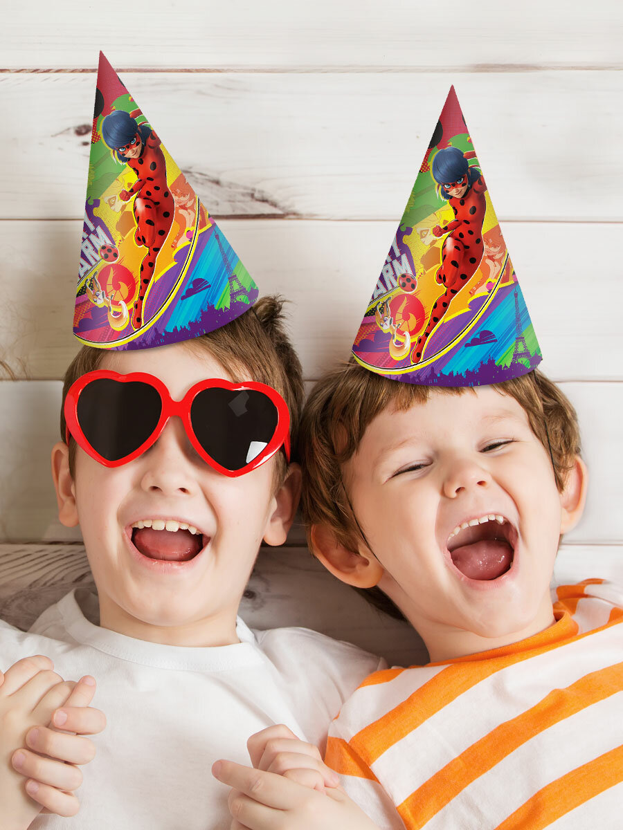 В наборе 6 бумажных колпаков на резинках с ярким, привлекательным принтом.