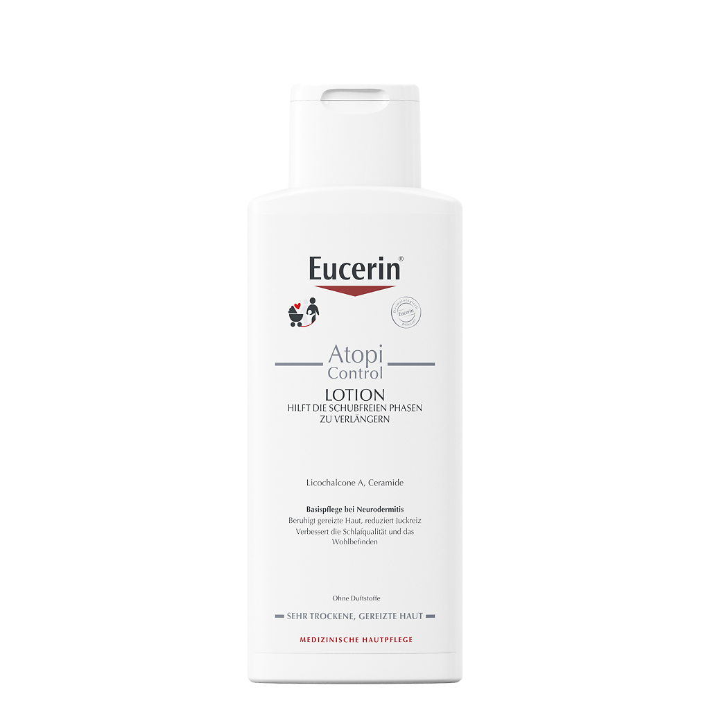 Кожа, пораженная атопическим дерматитом, сухая, раздраженная и подвержена зуду. Тяжесть течения заболевания усугубляется, что может оказывать отрицательное влияние на качество жизни и препятствовать нормальному сну. Лосьон для тела Eucerin Atopi Control подходит для ежедневного применения, он специально разработан для интенсивного увлажнения раздраженной и зудящей кожи. Легко впитывающийся лосьон обогащен успокаивающим ликохалконом А, церамидами и омега-кислотами, которые укрепляют кожный барьер, уменьшают сухость и зуд и продлевают период между обострениями атопического дерматита. При регулярном применении состояние кожи заметно улучшается, а кожа становится мягкой и гладкой. Лосьон Eucerin Atopi Control, не содержащий отдушек, также можно использовать вместе с успокаивающим кремом Eucerin Atopi Control во время обострения; было доказано, что он способствует здоровому сну и улучшает качество жизни у людей с атопическим дерматитом(1). Подходит для взрослых, детей и младенцев старше пяти месяцев. (1) Beiersdorf, исследование заявленных свойств Atopi Control, май 2017 г. Клинические исследования Исследования показали высокую эффективность и хорошую переносимость продукта на коже, подверженной атопическому дерматиту.