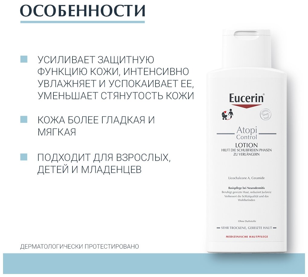 | Полное наименование | Лосьон для тела Eucerin AtopiCONTROL для взрослых, детей и младенцев 250 мл |