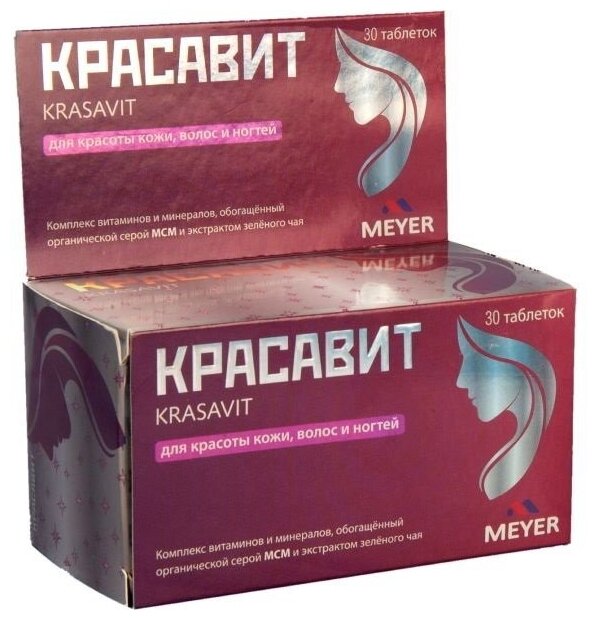 В основе комплекса Красавит лежит уникальная формула витаминов и минералов, обогащённая особо ценным компонентом МСМ и экстрактом зелёного чая, разработанная специально для поддержания женской красоты. Комплекс Красавит обладает направленным действием на улучшение состояния кожи, волос и ногтей.