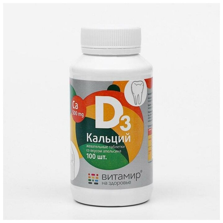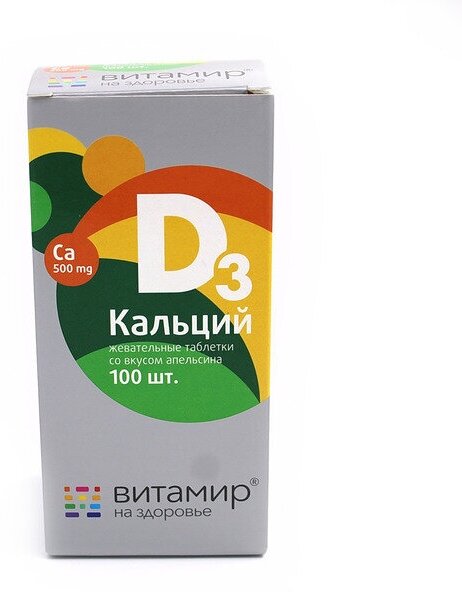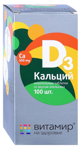 БАД. Дополнительный источник кальция, витамина Д3 таб. (кальция карбонат – 1,25 г (эквивалентно элементарному кальцию 500 мг), Витамин Д3 (холекальциферол) – 2,5 мкг (100 МЕ).Форма выпуска: жевательные таблетки массой 1,7 г Показания к применению Переоценить значение кальция - как основы здоровья костной, нервной и мышечной тканей - невозможно, к тому же он, занимая первое место среди минеральных элементов человеческого организма, является основным строительным материалом костей, зубов, волос и ногтей.Кальций обеспечивает нормальное функционирование организма в целом. Потребность в нем зависит от возраста. В подростковом возрасте потребление достаточного количества кальция очень важно для роста скелета. В составе костной ткани кальций содержится в одной из двух форм - свободной и связанной. Если резервы кальция в свободной форме истощены, для поддержания уровня кальция в крови, организм берет его из костей. Кости взрослого человека ежегодно обновляются на 20%.Для сохранения привлекательной внешности необходимо следить за балансом кальция в организме. Самый острый период, когда проявляется его недостаток – послеродовой период и пожилой возраст. Каждый второй пожилой человек страдает от остеопороза – атрофии костей, а женщины – в первую очередь. Уже после 30 лет недостаток кальция может стать причиной остеопороза у женщин. Способ применения и дозы Детям 3-7 лет по 1 таблетке в день во время еды; детям старше 7 лет по 1 таблетке 2 раза в день во время еды; взрослым по 1-2 таблетки 2 раза в день во время еды.Продолжительность приема – 1-2 месяца. При необходимости прием можно повторить Противопоказания индивидуальная непереносимость компонентов.