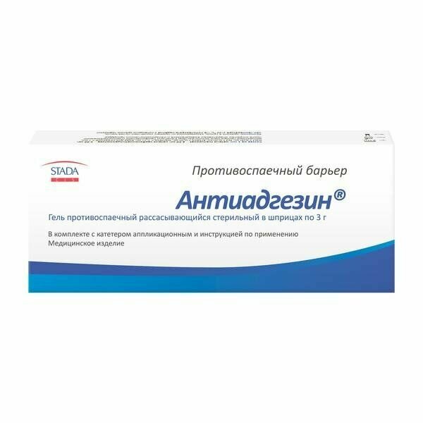 Гель Антиадгезин- предназначен для профилактики спайкообразования после операций на органах и тканях, имеющих серозное покрытие (брюшная полость, сухожильные влагалища, суставы, плевральная полость, полость перикарда, оболочки спинного и головного мозга, полость среднего уха, полость носа, оболочки яичка). Гель можно использовать при операциях, где имеется риск спаивания мягких тканей. Не назначать пациентам с установленными реакциями повышенной чувствительности к гиалуроновой кислоте, карбоксиметилцеллюлозе и их солям. Применение геля Антиадгезин- противопоказано в случае явной инфекции или контаминации в месте проведения операции. Не применять у пациентов с аутоиммунными заболеваниями или иммунными нарушениями. Состав:Гель
