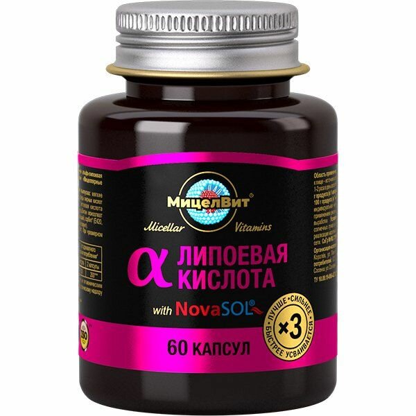 Мицеллированная альфа-липоевая кислота МицелВит капсулы 1350 мг 60 шт. — биологически активная добавка к пище, предназначенная для укрепления здоровья.
