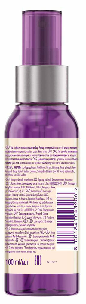 Масло для волос AUSSIE подходит для всех типов волос и имеет в составве масло жожаба. Масло легко наносится, не утяжеляет волосы, не оставляет жирного блеска. Масло подарит вашим локонам невероятный блеск, питание и легкость.