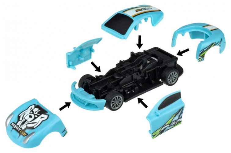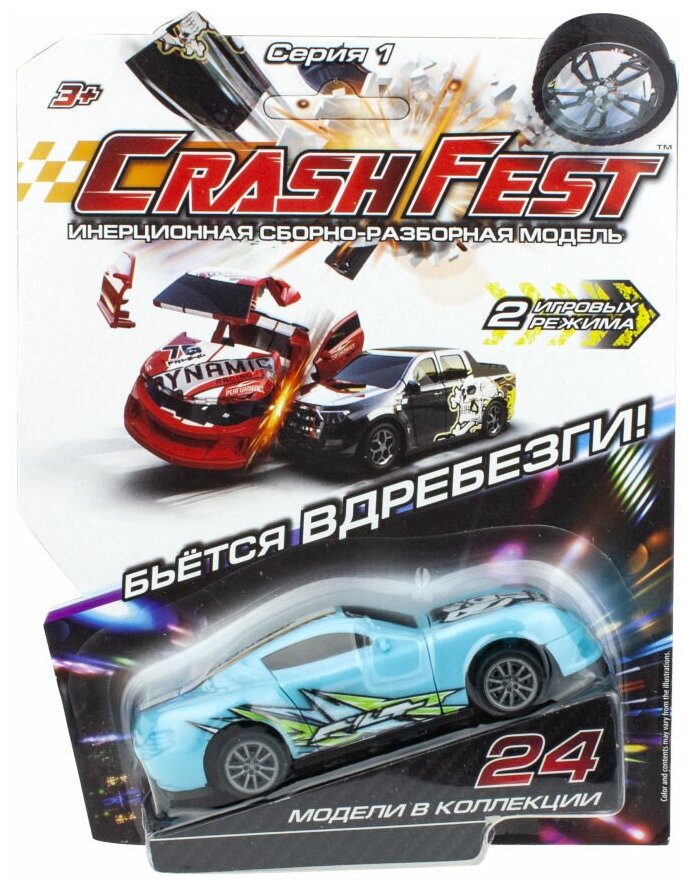 Миниатюрная игрушка для мальчиков от 3 лет. Игрушка выполнена в виде голубой гоночной машинки 2 в 1. Игрушка относится к первой серии автомобилей CrashFest, в которую входят 24 экземпляра. Размер игрушки 10 см, что делает ее удобной для различных детских игр или коллекционирования. Игрушка полностью безопасна в эксплуатации, а используемые при окрашивании ее деталей красители являются стойкими и нетоксичными. Машинка оснащена инерционным механизмом, она самостоятельно едет по ровной поверхности, если ее немного оттянуть назад, а затем отпустить. Машинка является разборной, ее отдельные элементы отлетают при столкновении игрушки с препятствием. Играя с машинкой, ребенок будет развивать моторику своих пальцев и получит еще один коллекционный экспонат.