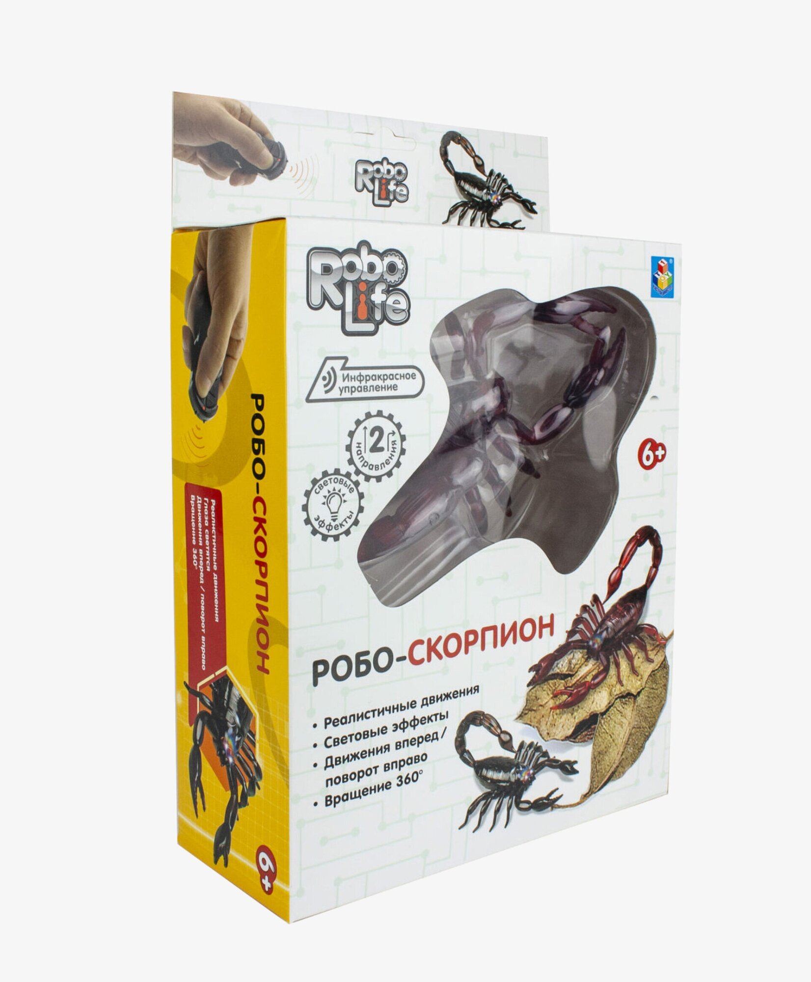 Игрушка со световыми эффектами, изображающая насекомое. Робо- скорпион реалистично двигается вперед + поворачивает вправо, имеет световые эффекты, вращается на 360 градусов. Игрушка на инфракрасном управлении, подзарядка от пульта. Хвост скорпиону можно отсоединить.