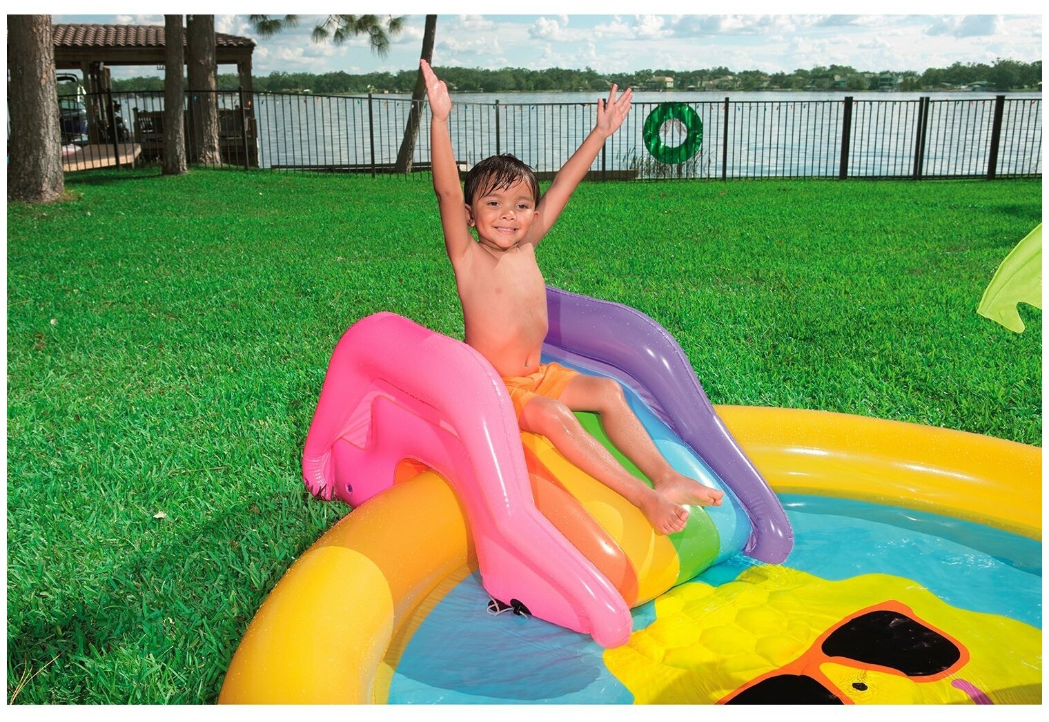 Надувной детский бассейн BESTWAY "Солнышко", 237х201 см, 225 л + игровые принадлежности (бв53071)