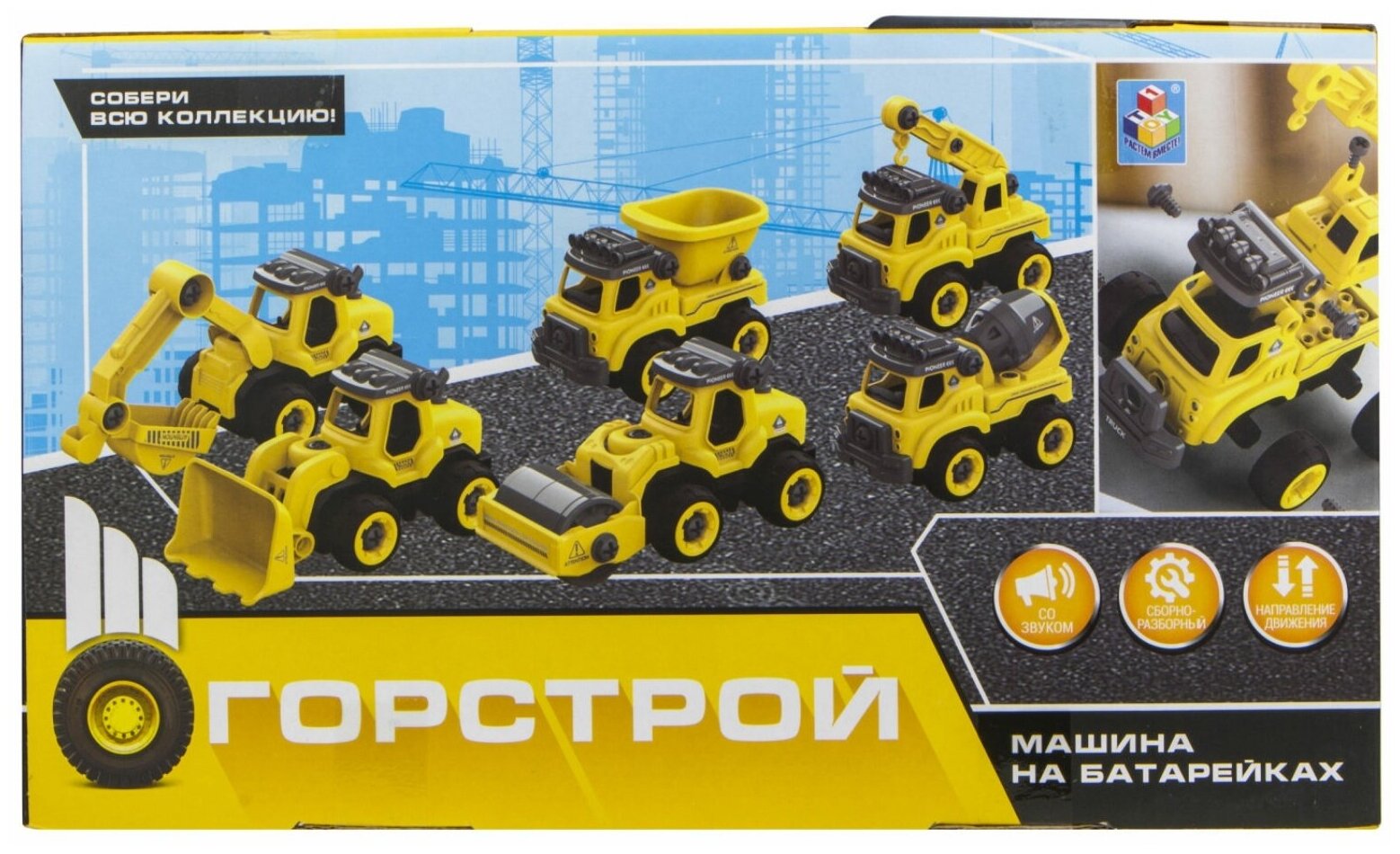 Автокран разбирается, поэтому мальчишки легко представят себя механиками и даже смогут потренировать мелкую моторику рук. После ремонтных работ они преступят к строительным, помогая себе подвижной стрелкой и катая технику с мощными колесами.