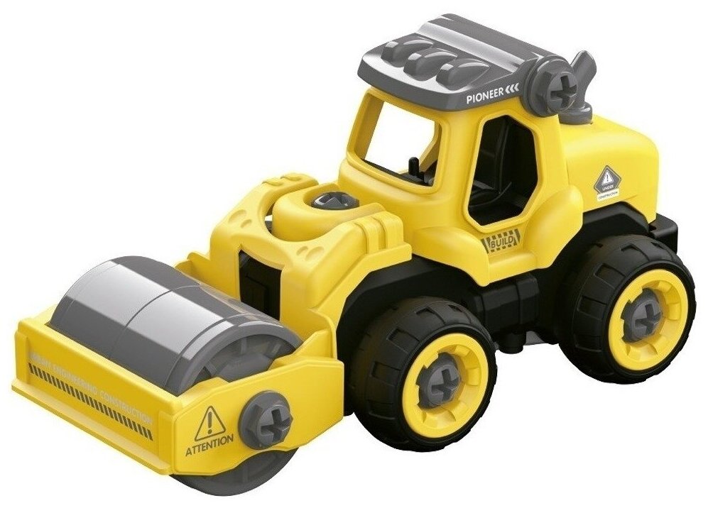 Реалистичная модель выполнена в виде строительного катка «Горстрой» на мощных колесах с рельефным протектором. Благодаря многофункциональному двигателю машинка может двигаться вперед и назад. Кроме того ребенок сможет познакомиться с назначением инструментов и самостоятельно разобрать и собрать модель с помощью шуруповерта и отвертки.Особенности:- Машинка «Горстрой» с двигателем позволит юному любителю игр на строительную тематику придумать захватывающие и эффектные сюжеты.- Машинку можно «чинить» с помощью реалистичных инструментов в комплекте – шуруповерта и отвертки.- У модели стильный и современный дизайн – прочный корпус с открытыми окнами.- Цвет игрушки – желтый, яркий и насыщенный, кузов украшен специализированными надписями.- Главной особенностью машинки является ее способность двигаться вперед и назад, благодаря двигателю, который вставляется в корпус.- Звуковое сопровождение сделает игру наиболее интересной и правдоподобной.- Игра способствует развитию воображения, фантазии и моторики ребенка.- Изготовлена игрушка из качественного пластика, окрашенного безопасными красителями. Имеет требуемую сертификацию.Для работы игрушки необходимы батарейки: 2 АА для работы двигателя (в комплект не входят), AG13 для работы звукового элемента (в комплекте).Длина машинки: 18 см.