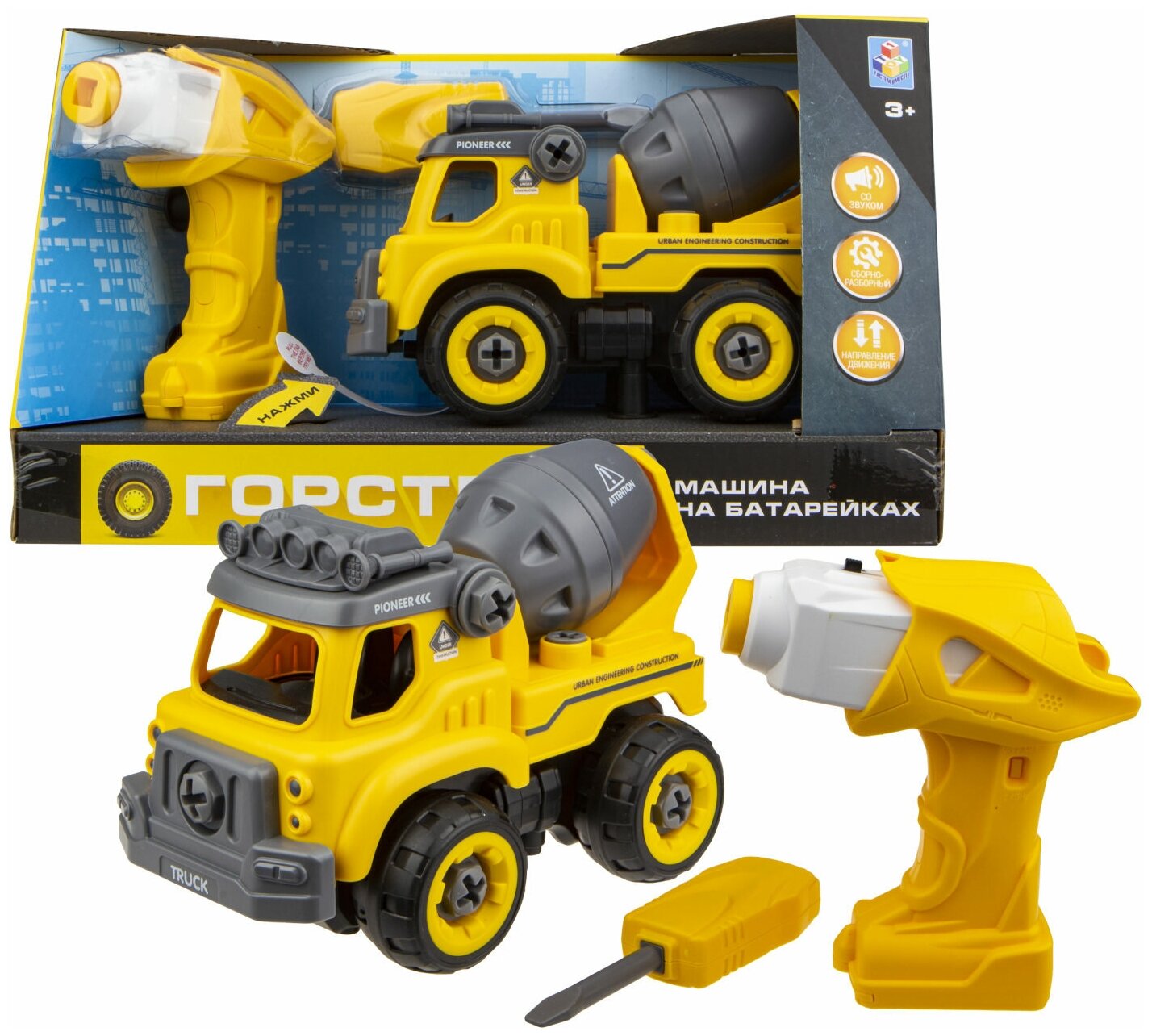Игрушка от компании «1Toy» разнообразит игры Вашего ребенка на строительную тематику. Она выполнена в виде бетономешалки из серии «Горстрой», с прочным и ярким сборно-разборным корпусом. С помощью инструментов в комплекте юный механик сможет ее «чинить». Особенности: - Бетономешалка «Горстрой» с двигателем позволит юному любителю игр на строительную тематику придумать захватывающие и эффектные сюжеты. - Машинку можно «чинить» с помощью реалистичных инструментов в комплекте – шуруповерта и отвертки. - У модели стильный и современный дизайн – прочный корпус с открытыми окнами, мощными колесами. - Цвет игрушки – желтый, яркий и насыщенный, кузов украшен специализированными надписями. - Главной особенностью машинки является ее способность двигаться вперед и назад, благодаря двигателю, который вставляется в корпус. - Звуковое сопровождение сделает игру наиболее интересной и правдоподобной. - Игра способствует развитию воображения, фантазии и моторики ребенка. - Изготовлена игрушка из качественного пластика, окрашенного безопасными красителями. Имеет требуемую сертификацию.