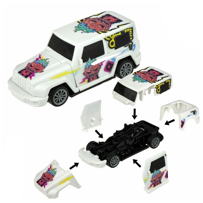 Перед Вами коллекция из 24 гоночных автомобилей CrashFest ( Краш Фест)! Мощный инерционный мотор делает их нереально быстрыми! С машинками CrashFest можно не только устраивать заезды, но и умопомрачительные краш-тесты: врезаясь в препятствие, машинка бьется вдребезги. Но не стоит отчаиваться, ее легко собрать и продолжать игру. 2 Игровых режима. "Закрытый замок"-теперь ты готов к гонкам на пределе скорости. "Открытый замок"-и теперь ты можешь устроить жуткий погром! Создать крутую аварию! Разбить машинку вдребезги!