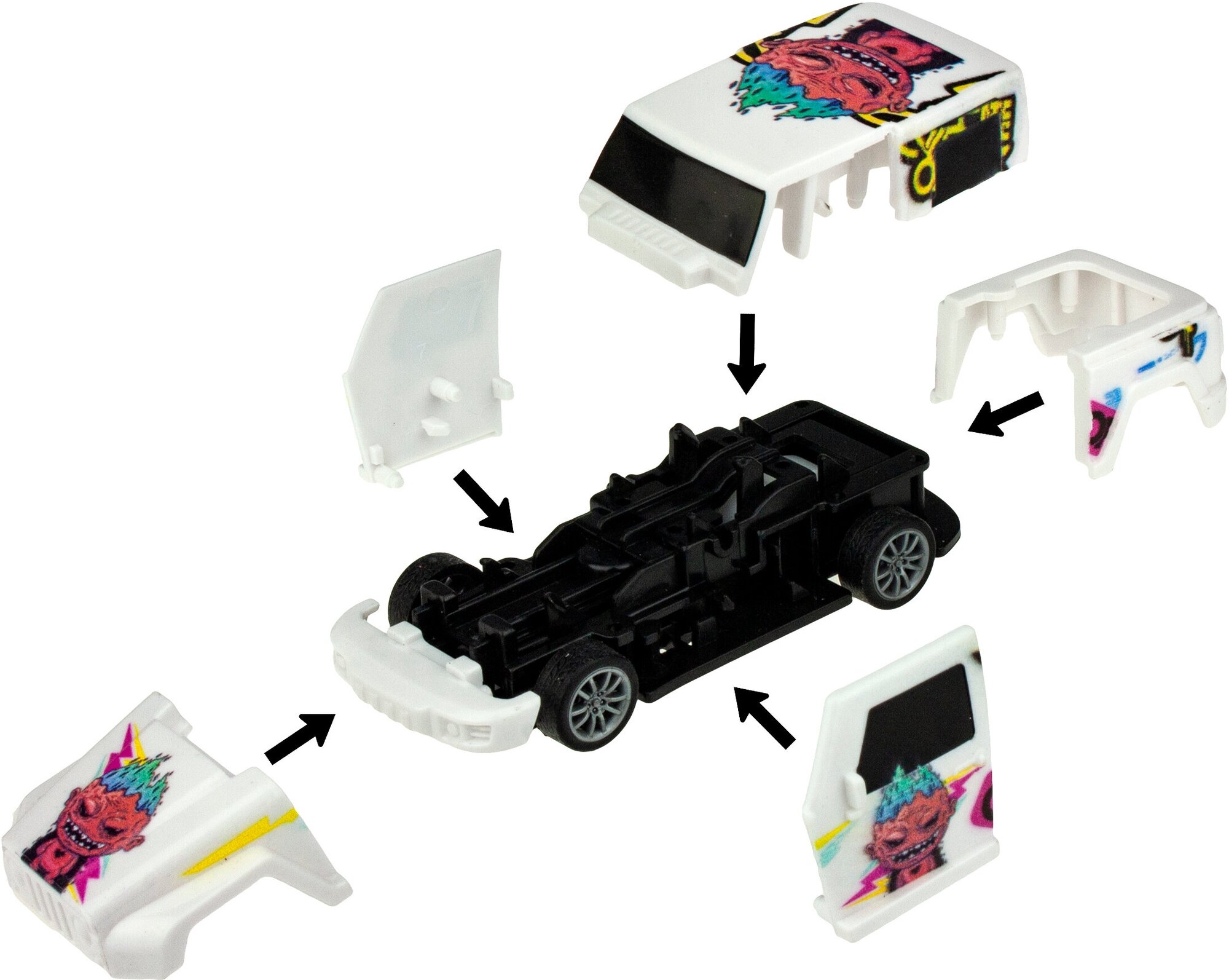 Мощный инерционный мотор делает их нереально быстрыми! С машинками CrashFest можно не только устраивать заезды, но и умопомрачительные краш-тесты: врезаясь в препятствие, машинка бьется вдребезги. Но не стоит отчаиваться, ее легко собрать и продолжать игру. 2 Игровых режима. "Закрытый замок" - теперь ты готов к гонкам на пределе скорости. "Открытый замок" - и теперь ты можешь устроить жуткий погром! Создать крутую аварию! Разбить машинку вдребезги!