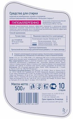Ищете идеальное средство по уходу за одеждой из мембранных тканей и пуховиков? Гель для стирки Большая стирка решит эту проблему! Гипоаллергенный гель для стирки изделий из мембранных тканей и пуховиков идеально справляется с задачей. Гель эффективно удаляет загрязнения, устраняет неприятные запахи, дезодорирует одежду, бережно ухаживает за волокнами ткани, поэтому даже после многократных стирок вещи сохраняют цвет и форму. Средство создано специально для стирки изделий и мембранных тканей и пуховиков. Оно придает вещам обновленный, свежий вид, полностью выполаскивается. Средство гипоаллергенно, что подтверждено протоколом института им. Пастера. Гель "Большая стирка. Energy" поможет продлить жизнь любимым вещам, которые всегда будут выглядеть как новые.