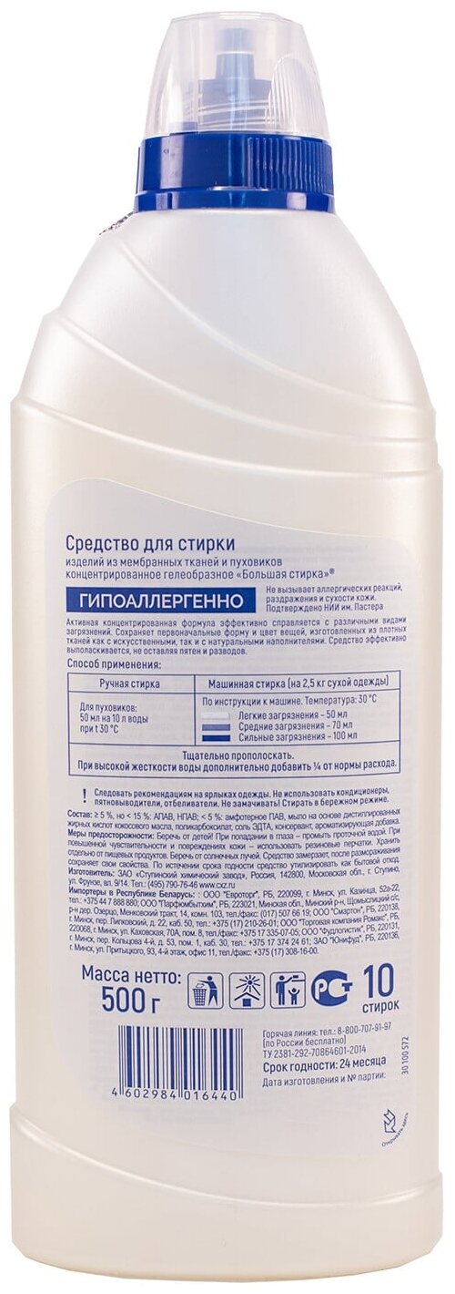 Гель для стирки пуховиков Большая стирка 500мл Ступинский химический завод