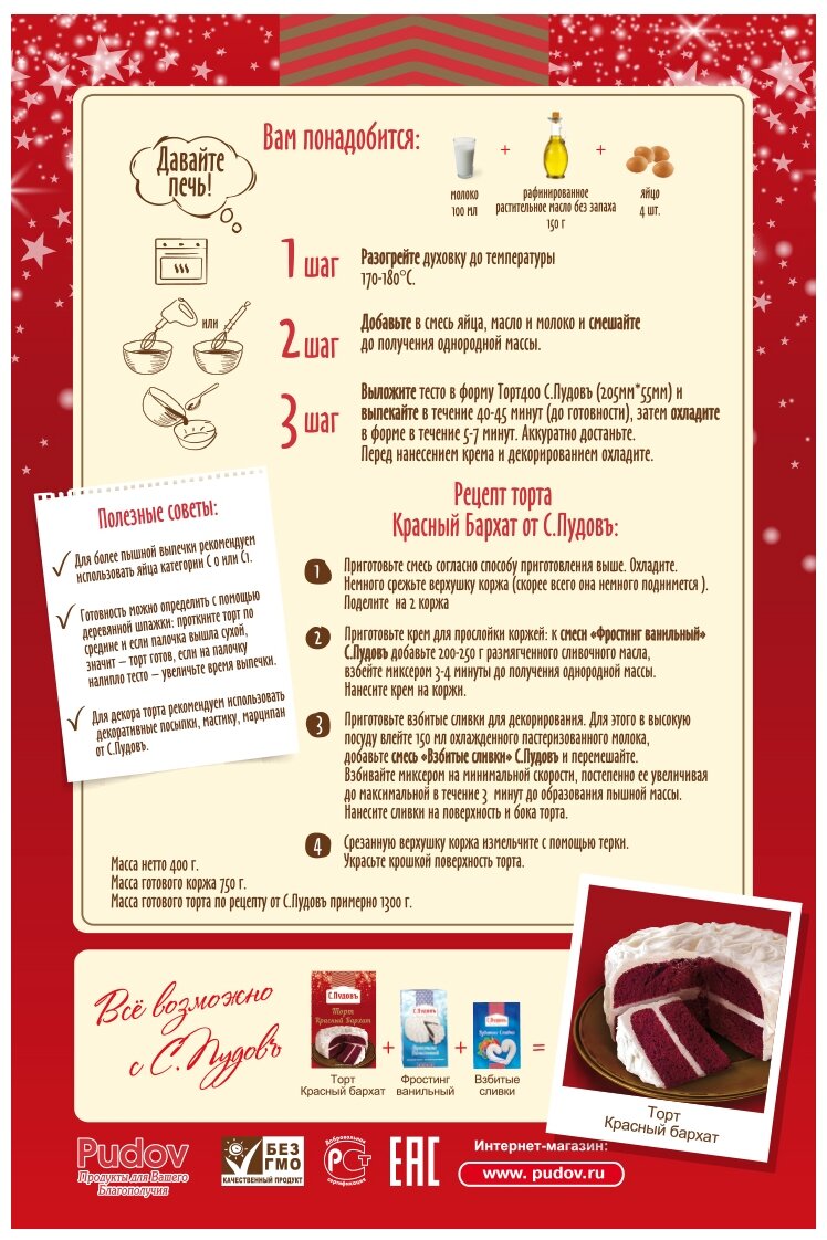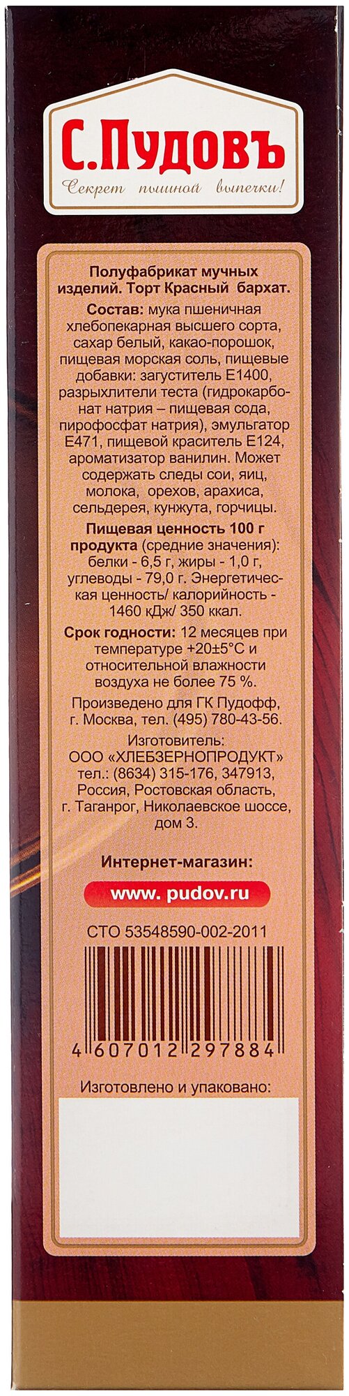 Смесь для выпечки С.Пудовъ Торт Красный Бархат 400г Хлебзернопродукт