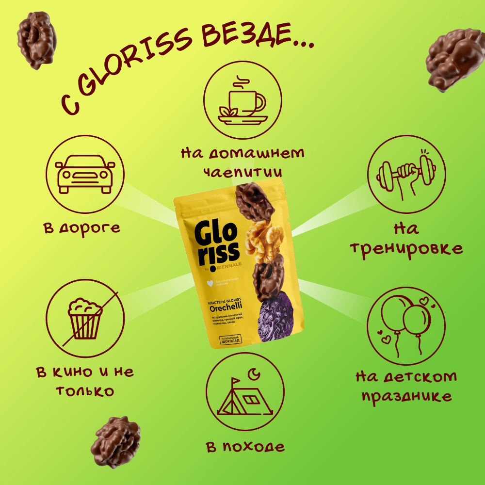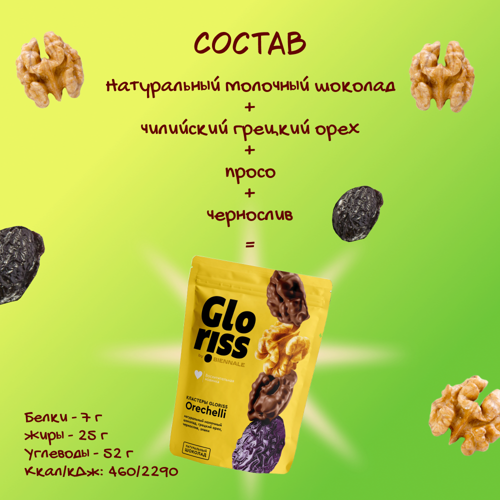 Состав: Состав: молочный шоколад сахар, масло какао, сухое цельное молоко, какао тертое, сухая молочная сыворотка, обезвоженный молочный жир, эмульгаторы: соевый лецитин, ароматизатор: Ванилин, ядра арахиса жареные соленые, ядро ореха грецкого, рис воздушный мука рисовая, мука пшеничная, сахар, соль, кожура лимона сушеная, ароматизатор натуральный: Апельсиное масло. Продукт может содержать следы кунжута и других орехов.