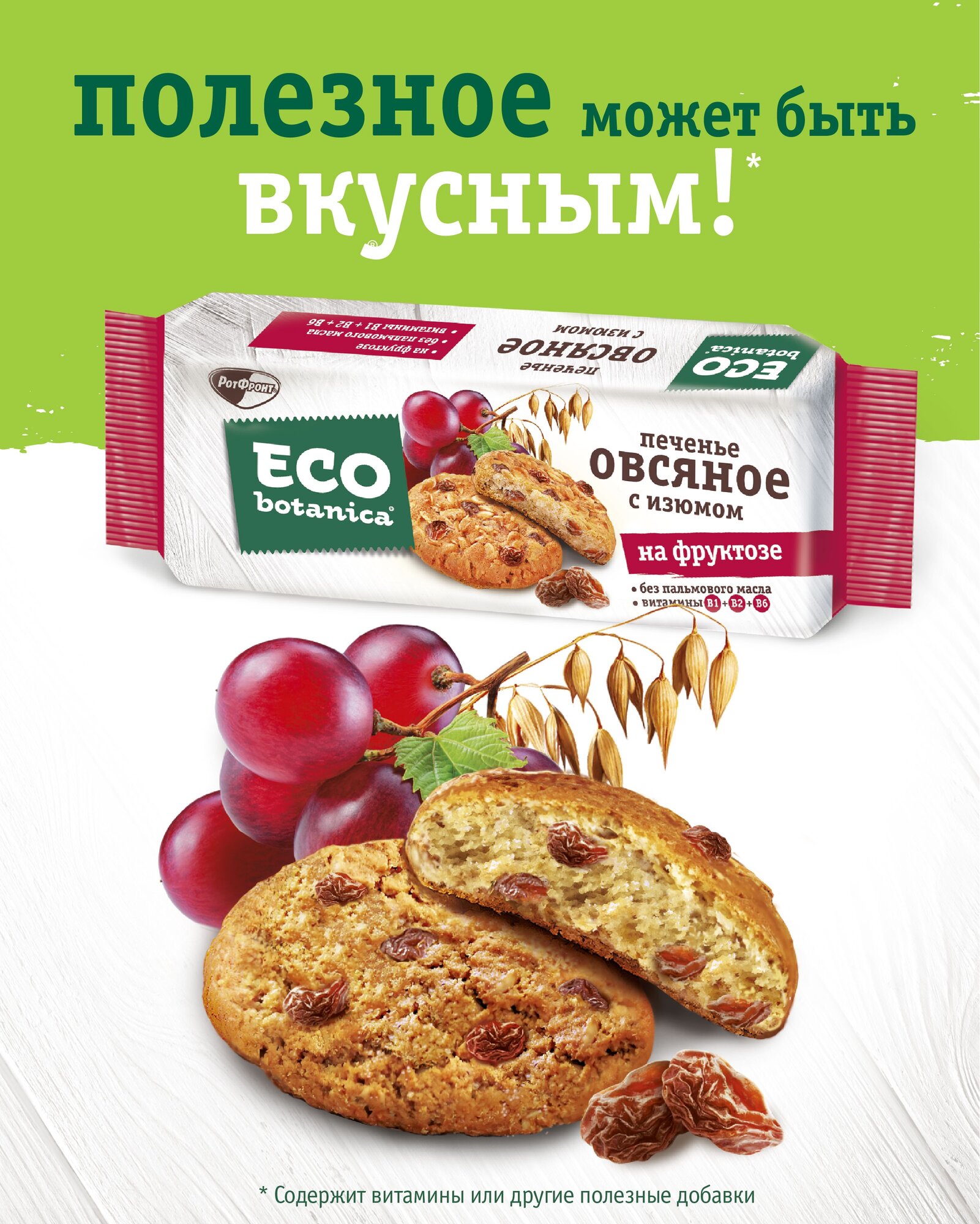 Печенье Eco-Botanica Овсяное со злаками и изюмом на фруктозе 280г Рот Фронт