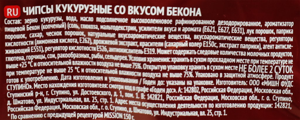 | Производитель | Мишн Фудс Ступино |