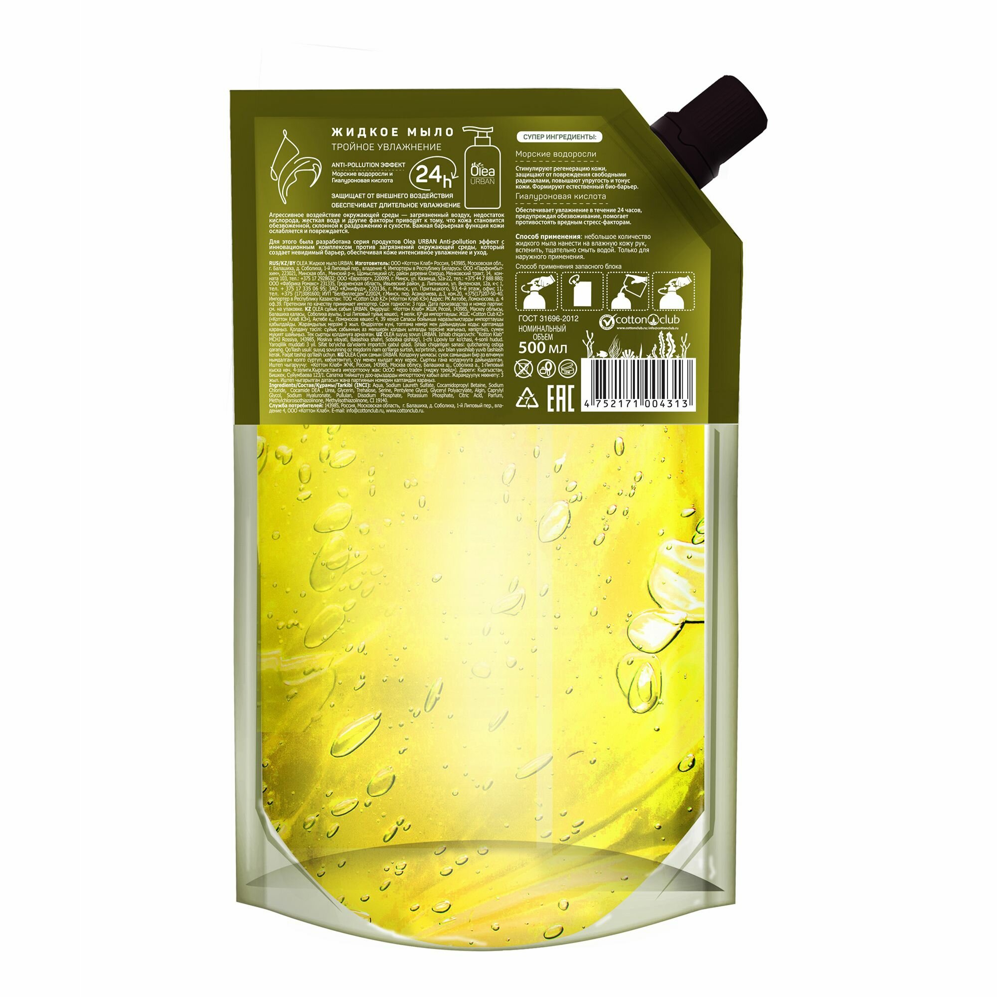 Мыло жидкое Olea Urban Тройное увлажнение с морскими водорослями 450мл