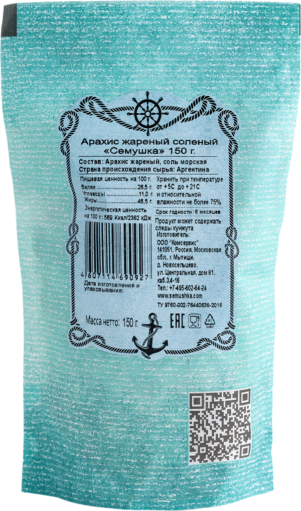 Описание товара:Арахис жареный солёный Сёмушка, 150 г. Время быть здоровым. Страна происхождения: Аргентина. ТУ 9760-002-76440635-2016.Состав товара:Арахис жареный, соль.Меры предосторожности:Продукт может содержать следы кунжута. Хранить при относительной влажности воздуха не более 75%.