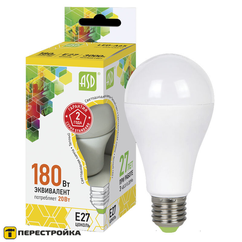 - Светодиодная лампа ASD E27 LED-A60 20Вт 4000K
