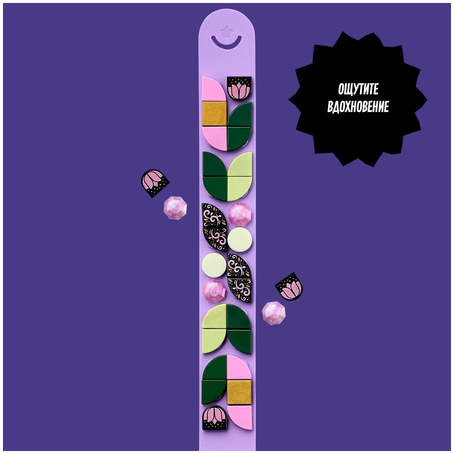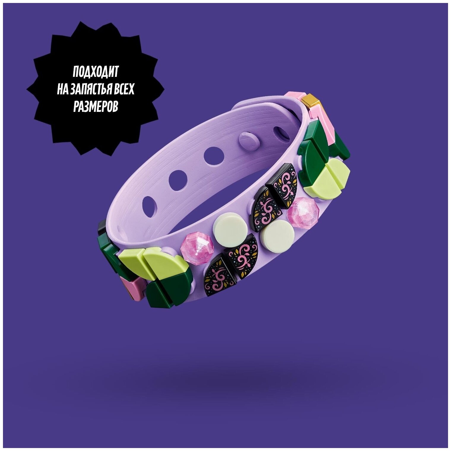 Детям, любящим фантазировать и создавать украшения своими руками, обязательно понравится этот классный набор «Браслет Волшебный лес» LEGO DOTS (41917)! Этот простой и интуитивно понятный набор для творчества дарит детям возможность придумать собственный дизайн браслета, соответствующий их наряду или настроению. В этот популярный набор входит регулируемый по размеру гибкий браслет фиолетового цвета, который удобно надевать на большие и маленькие запястья, а также 32 разноцветные плитки для украшения, в том числе перламутровые плитки-бриллианты, золотые и светящиеся в темноте детальки. Придумывая собственные уникальные дизайны, дети создадут неповторимый браслет, а также будут развивать свои творческие способности и навыки самовыражения. Этот творческий набор предоставляет детям возможность выразить свой внутренний мир и рассказать о своих увлечениях, придумывая самые невероятные дизайны для этого браслета.Набор LEGO DOTS 41917 Браслет «Волшебный лес» - это творческая игрушка для детей в возрасте от 6 лет. Креативный конструктор позволяет создать своими руками украшение, которое можно носить.- Поощрите любовь вашего ребенка к творчеству с помощью этого обворожительного набора «Браслет Волшебный лес» LEGO DOTS (41917) с регулируемой застежкой и 32 разноцветными плитками для декорирования. Творчество начнется, как только вы достанете конструктор из коробки! - Создавайте уникальные украшения своими руками! Украшая этот забавный браслет «Волшебный лес» LEGO DOTS (41917), воссоздавая готовые узоры, изображенные на коробке, или придумывая собственные уникальные дизайны и стили, дети будут развивать свои творческие способности и навыки самовыражения. - Дети могут играть с этим конструктором отдельно или объединить его с другими наборами LEGO DOTS, чтобы придумать новые необычные дизайны. Они также смогут использовать набор «Дополнительные элементы» LEGO DOTS (41908) серии 1, чтобы оживить свои браслеты дружбы с помощью новых деталей. - Этот творческий набор понравится всем любителям искусства и дизайна. Этот гибкий браслет с разноцветными декоративными плитками вызовет восхищение у любого ребенка и станет великолепным подарком на Новый год, день рождения или другой праздник для мальчиков и девочек в возрасте от 6 лет. - Маленький набор, который можно повсюду носить с собой. Этот восхитительный набор, включающий в себя браслет длиной чуть более 20 см (7), идеально подходит для начинающих дизайнеров, которые смогут придумывать новые стили и дизайны и демонстрировать лучшие из них друзьям, надев браслет на руку. - Бесконечное веселье и творчество, для которого нужно лишь детское воображение! Неэлектрические игрушки способствуют развитию у детей творческих способностей, а также помогают им почувствовать радость от создания чего-то нового своими руками.