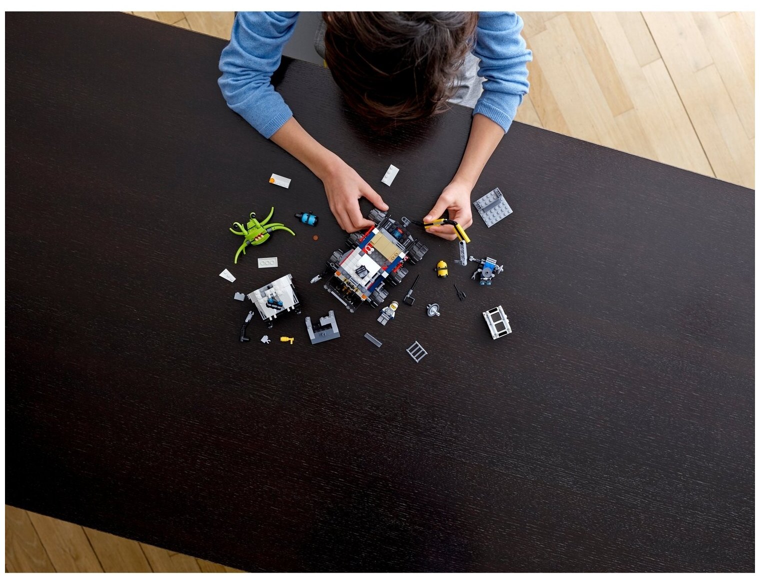 Открывай новые планеты и галактики на этом Исследовательском планетоходе! Собери образцы захватами робота, а затем с помощью крана установи его на крышу планетохода, чтобы продолжить своё путешествие. Ух ты, посмотри на этого пришельца! Перестрой планетоход в космическую базу, чтобы исследовать Марс и другие планеты, или в космический корабль, или любую другую модель, которую тебе подскажет воображение. Исследуй космос с этим невероятным набором 3 в 1!
