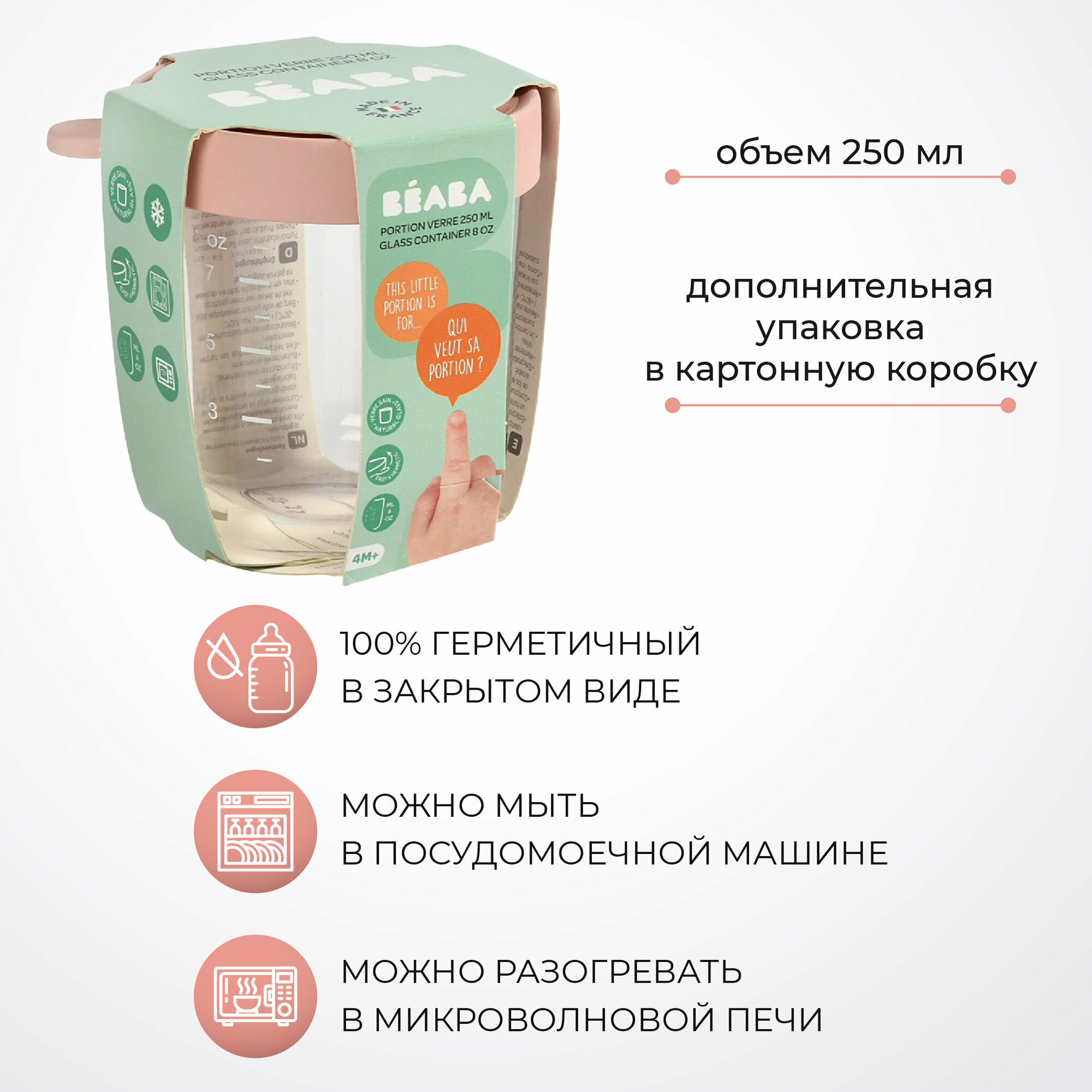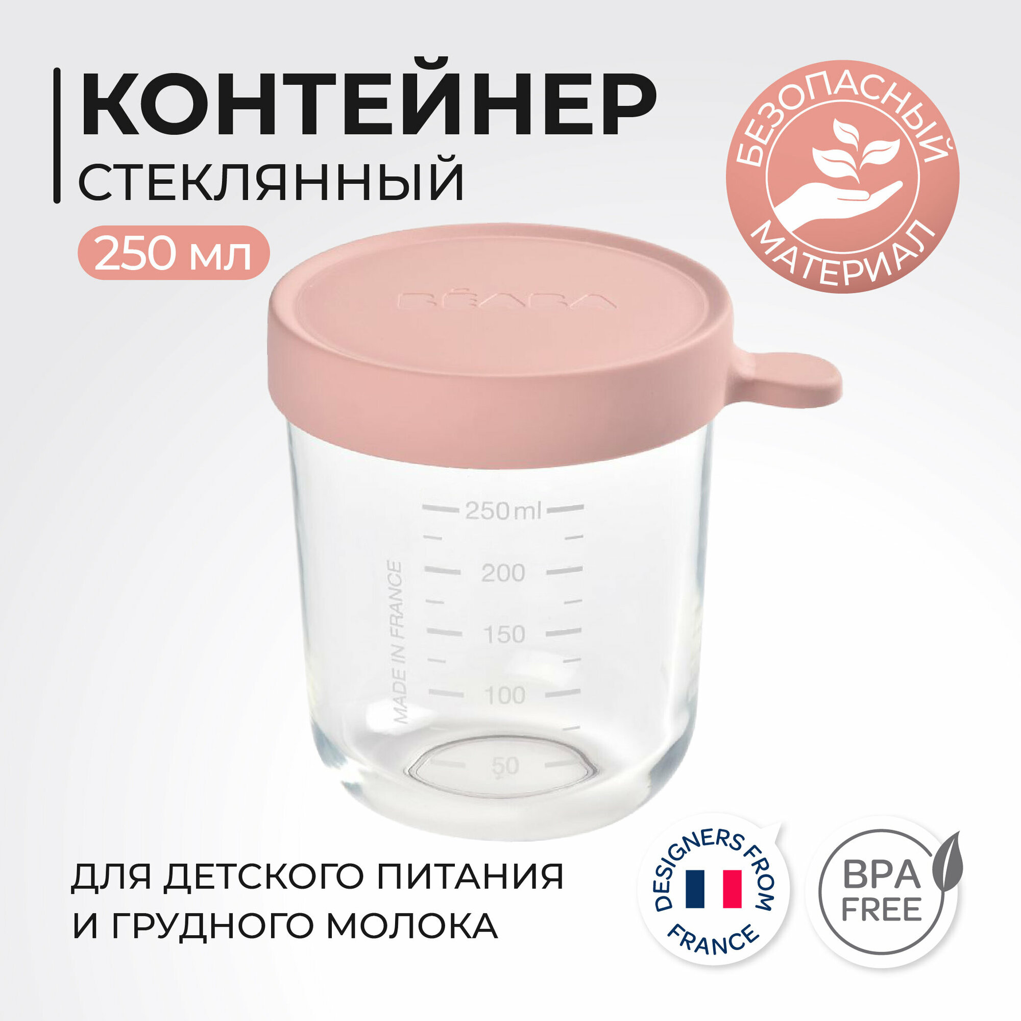 Контейнер стеклянный для хранения Beaba Babycook 250 мл розовый (912653) BÉABA