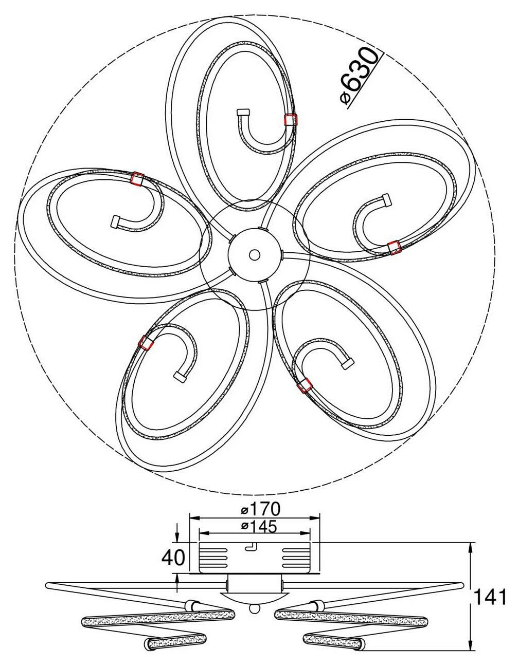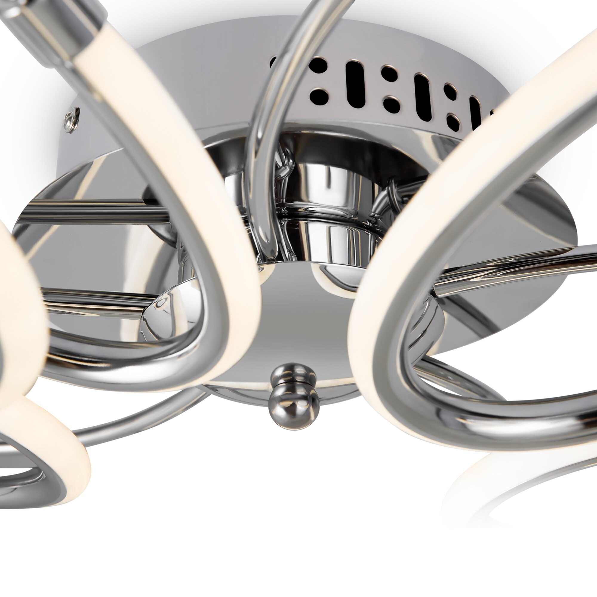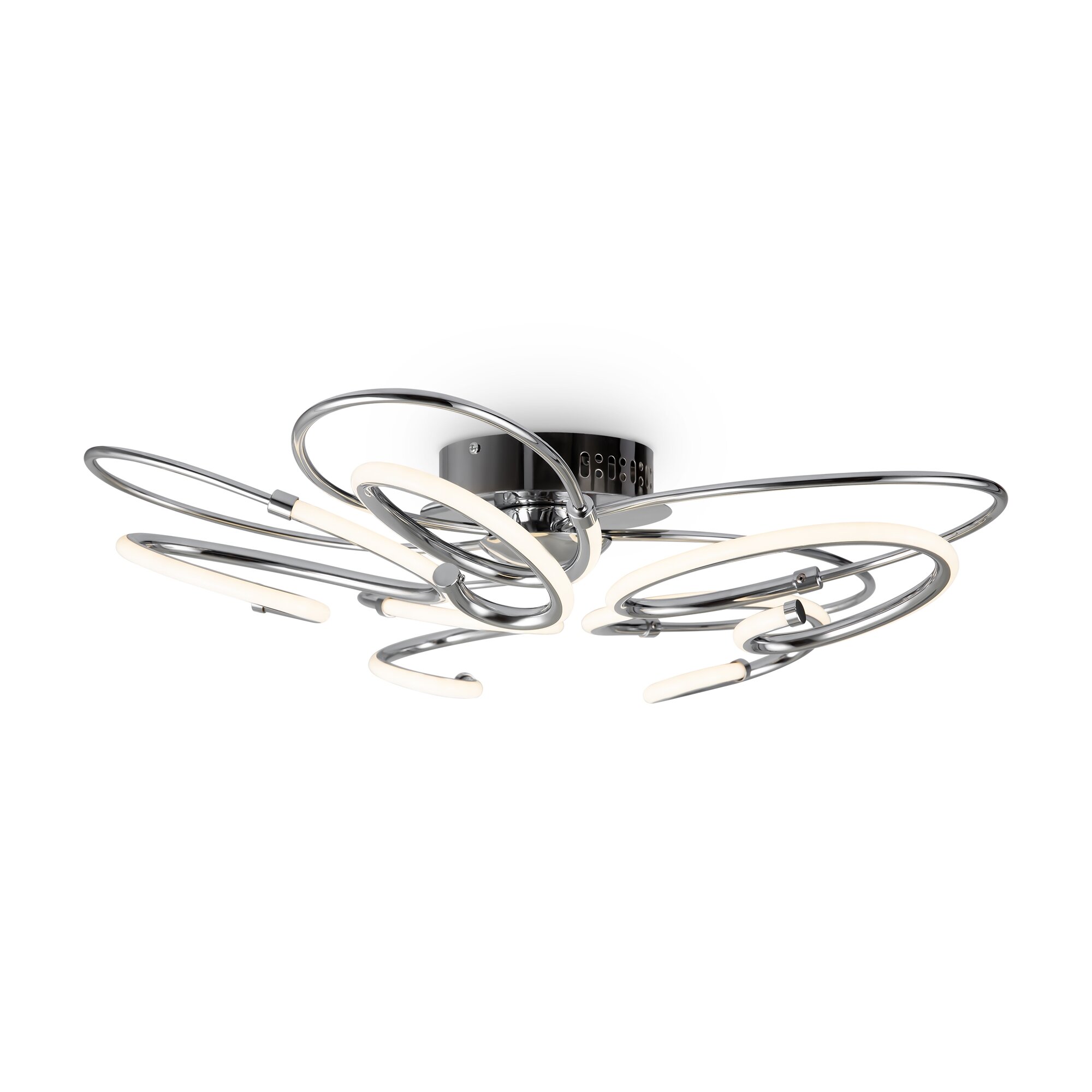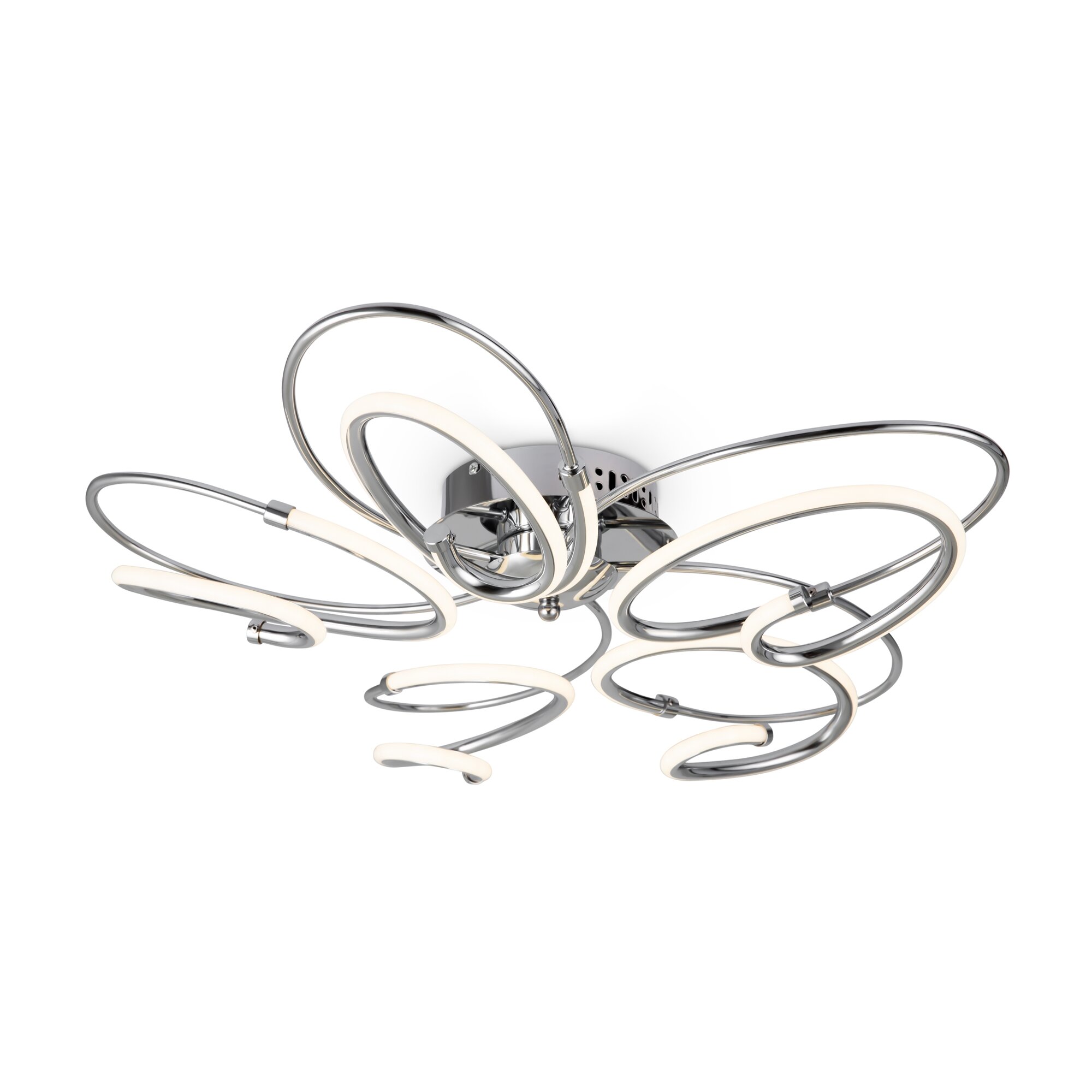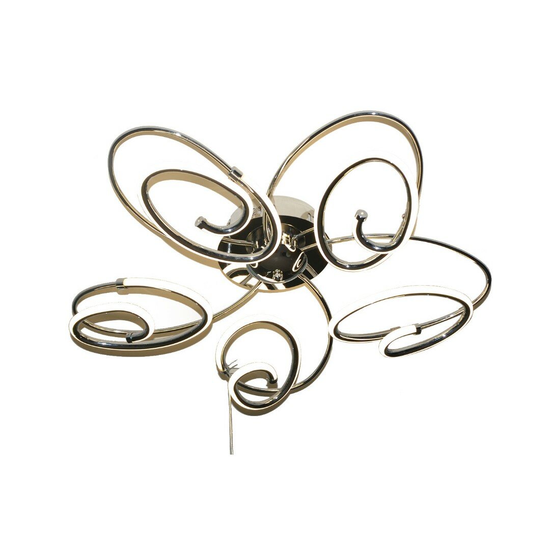 Потолочный светильник FR6017CL будет эффектно смотреться в современном интерьере холла, гостиной, просторной спальни. Модель из хромированного металла и ПВХ сочетает высокую функциональность и оригинальный футуристический дизайн. Из круглого основания выходят 5 причудливо изогнутых рожков, напоминающих вьющиеся растения. В них встроены светодиоды, обеспечивающие яркое и одновременно экономичное освещение. Люстра не утяжеляет пространство, подходит для комнат со стандартными и низкими потолками.