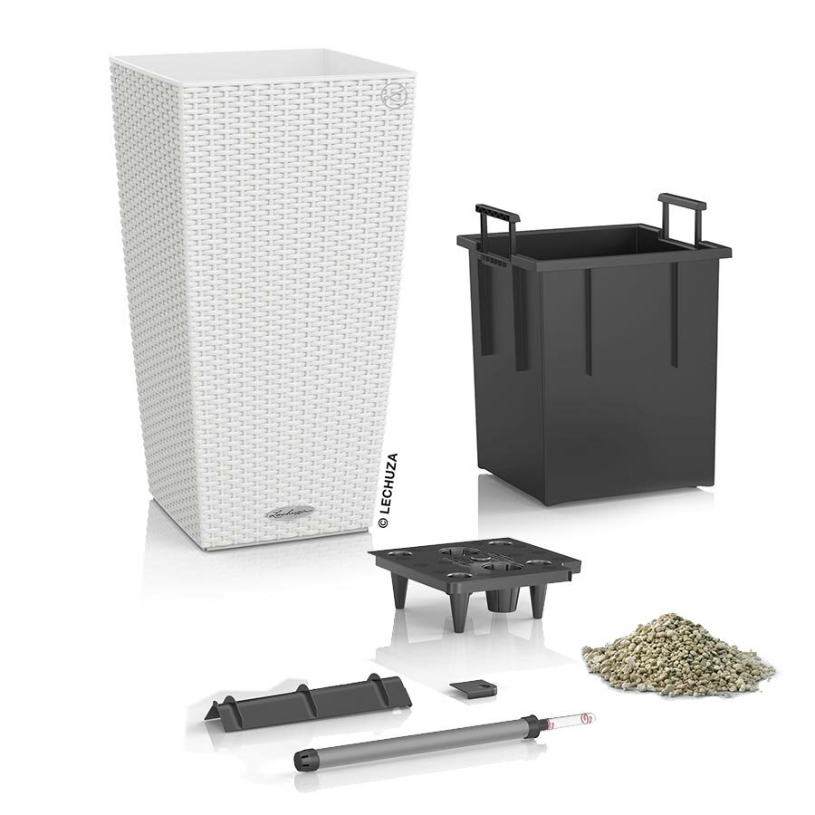 Кашпо с системой автополива – это универсальный, оригинальный и незаменимый помощник для растений. Дизайн кашпо отличается естественным белым цветом, а также плетёной текстурой. Благодаря высококачественной пластмассе, изделие абсолютно устойчиво к повреждениям, перепадам температур и выгоранию на солнце. Идеально подходит как для квартиры, так и для загородного дома и расположения под открытым небом. Высота кашпо является оптимальной для большинства высаживаемых крупных, высоких растений, позволяя создавать необыкновенно красивые цветущие композиции. В комплект входят пересадочный горшок с ручками, буферная вставка с дренажными отверстиями, а также индикатор уровня воды. Благодаря системе автополива, вы сможете забыть о поливании цветов на срок до трёх месяцев, независимо от того, где расположены растения – в тени или под жарким солнцем.