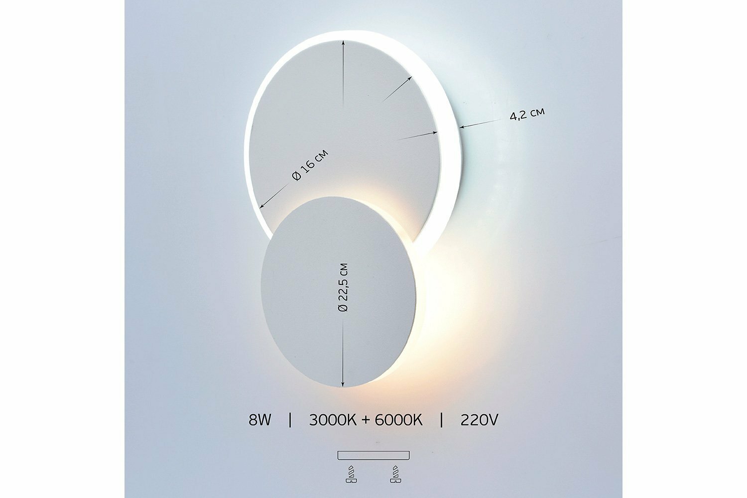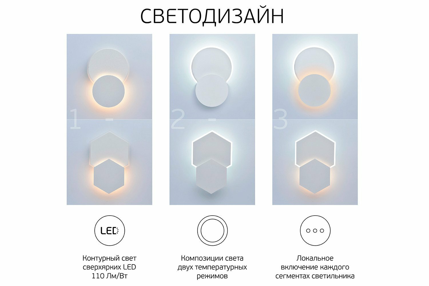 Бра Круз — это светильник, который демонстрирует удачное применение новых технологий и материалов. Смещая малый диск плафона относительно большого, вы можете получить множество вариантов освещения и подсветки, сделать ее максимальной или минимизировать. Это оригинальный источник света, который можно использовать как дополнительный или декоративный, а также — как основной для создания уютной интимной атмосферы. Акриловые элементы прочны, легко чистятся, не выгорают, не меняют цвет.
