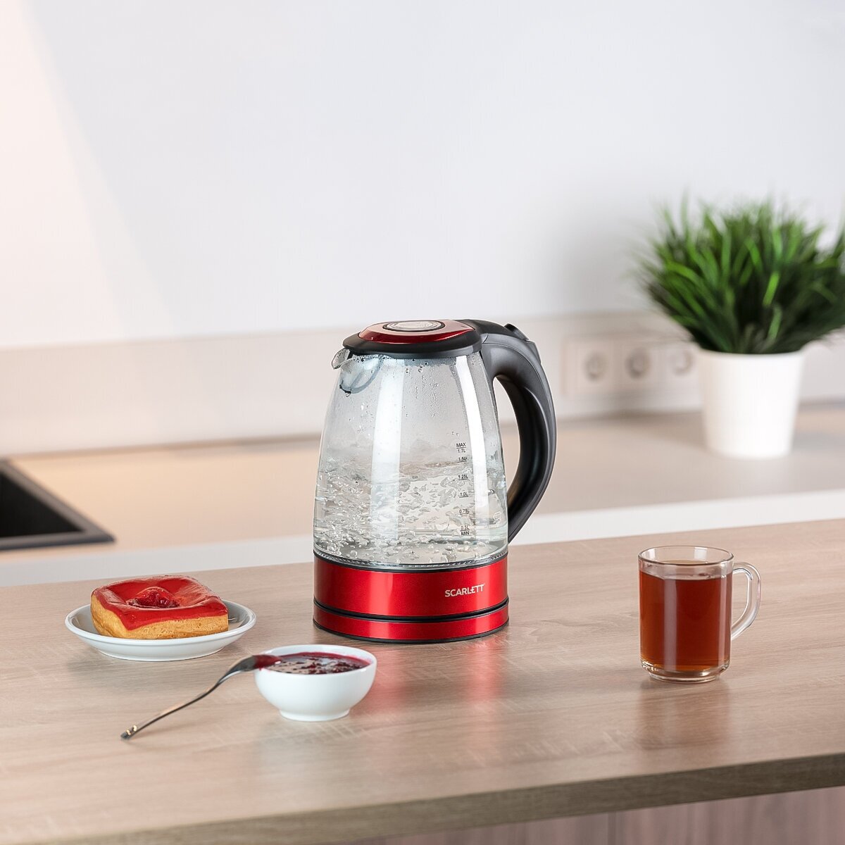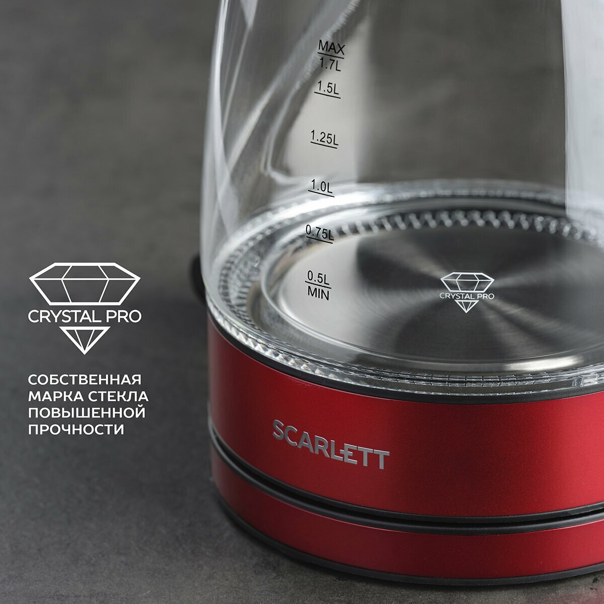 Чайник электрический Scarlett SC-EK27G99 2200 Вт красный 1.7 л стекло