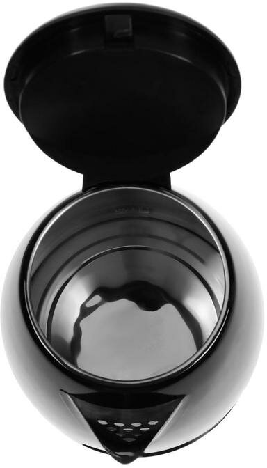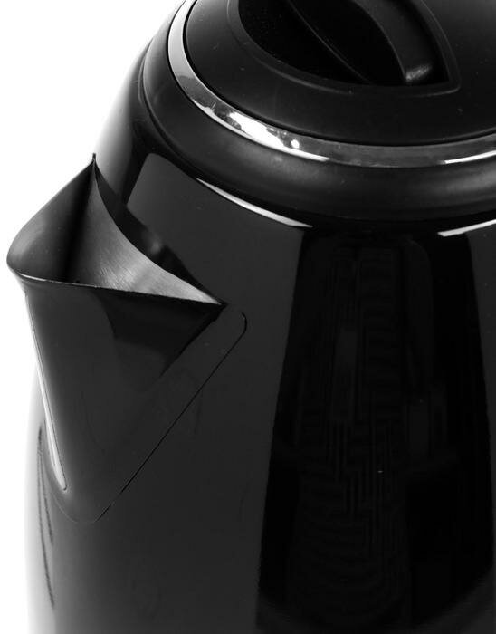 Его мощность всего 1350-1500 Вт, таким образом он не будет оказывать чрезмерную нагрузку на электросеть в помещении. В качестве нагревательного элемента выступает металлический диск расположенный на дне чайника, поэтому его проще мыть и очищать от накипи.