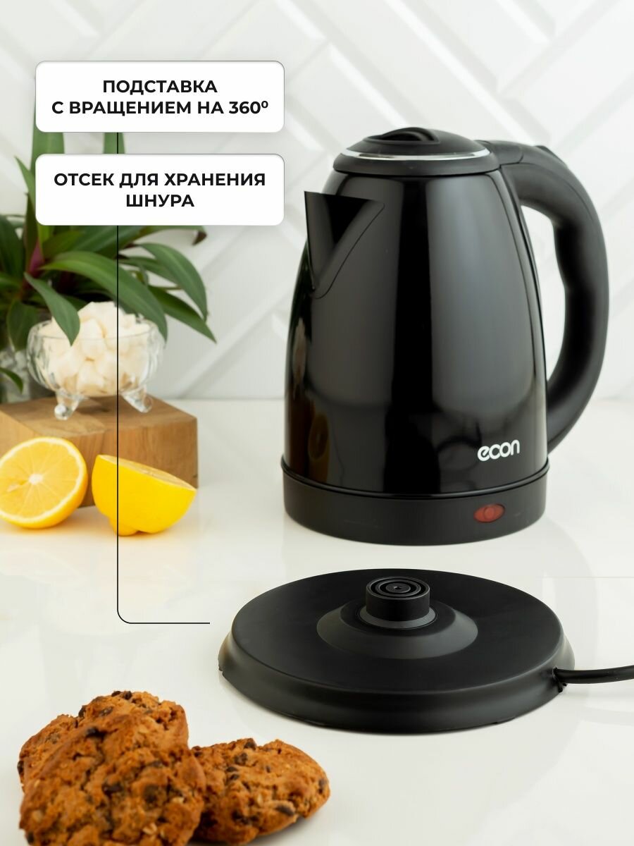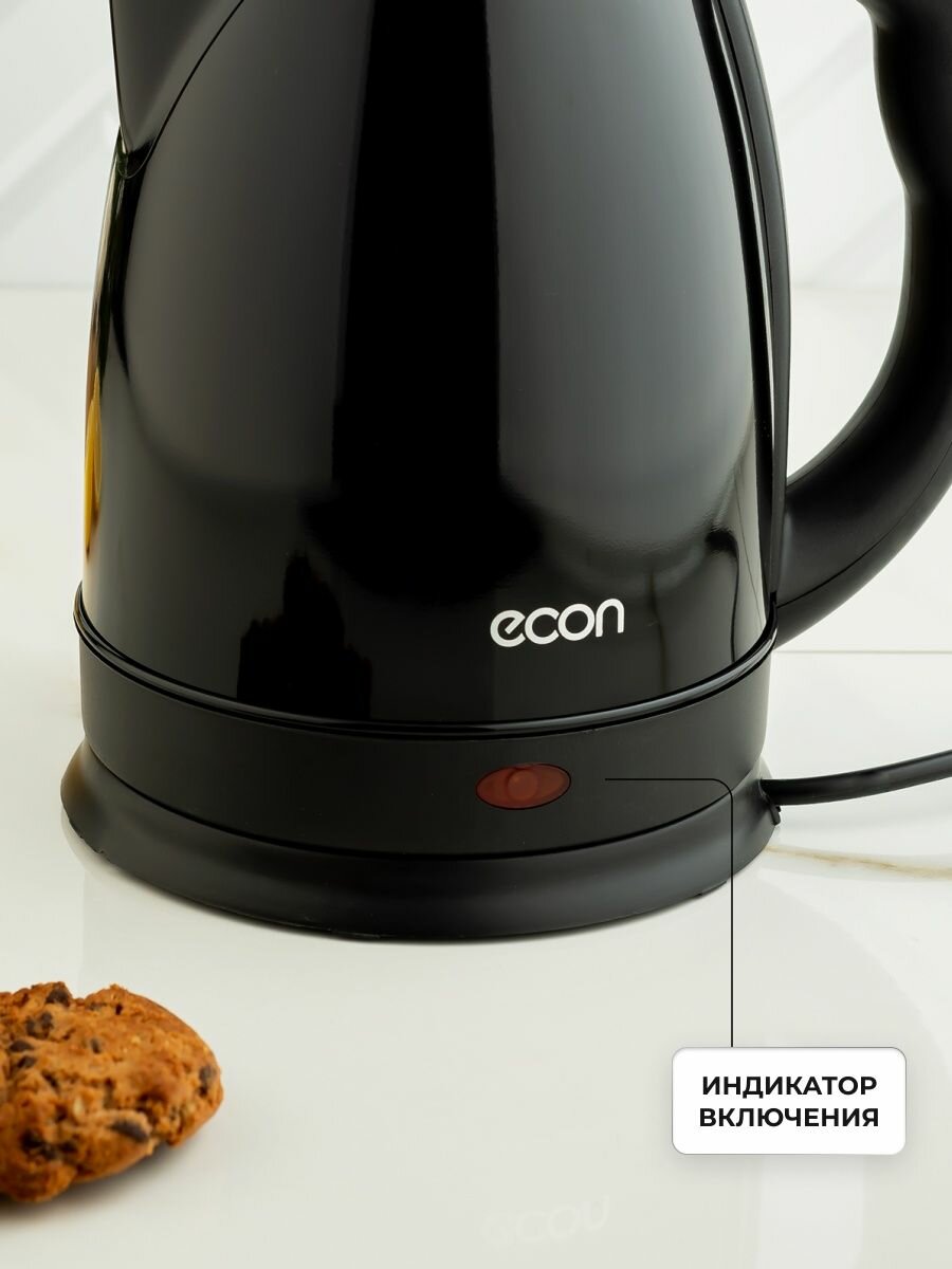 Емкость нашего чайника ECON составляет 1,8 литра, этого вполне достаточно что бы согреть воду для всех членов семьи или небольшого офиса.