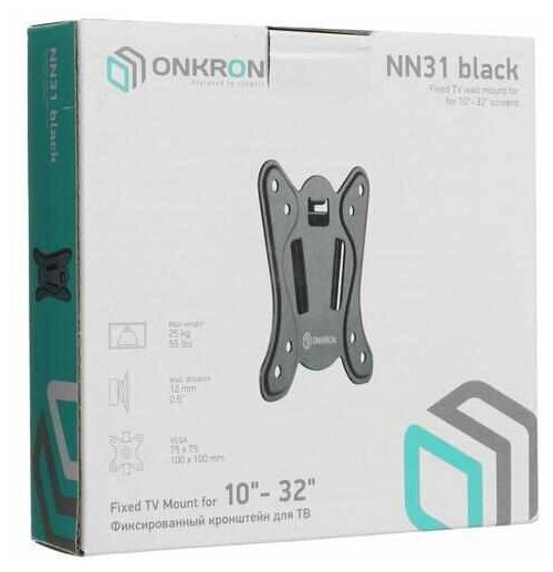 | Дополнительно | Настенный фиксированный кронштейн ONKRON NN31 предназначен для ТВ с диагональю от 10 до 32 дюймов (25,4 – 81,28 см). Он подходит для небольших телевизоров и мониторов весом до 25 кг. Устойчивая площадка позволит надежно зафиксировать крепление даже при установке к не самым прочным поверхностям. Простая конструкция позволит установить кронштейн легко и быстро. |