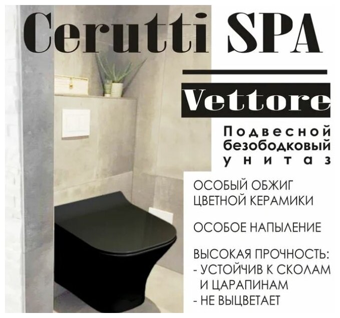 Унитаз Cerutti SPA 2615E Matt Black 7506 подвесной с сиденьем Микролифт