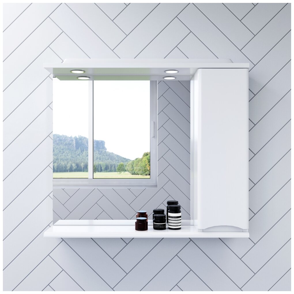 | Оснащение | зеркало с подсветкой, механизм доводчика, зеркало с полочкой, зеркало с розеткой, крепления, зеркало |