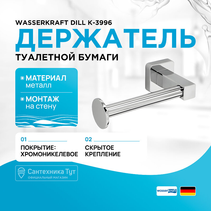 Держатель туалетной бумаги WasserKRAFT Dill K-3996 Хром