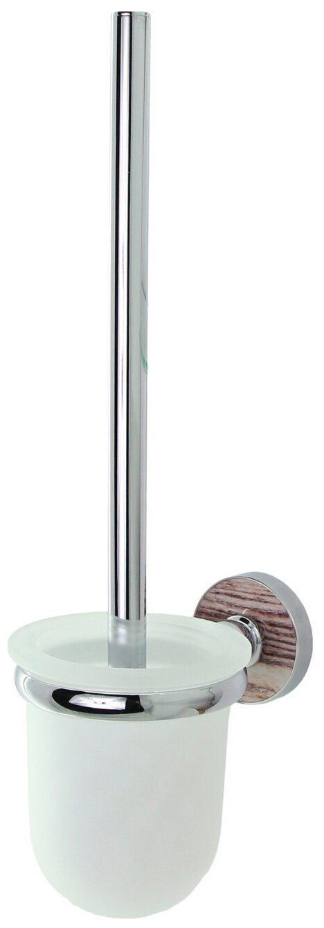 Щетка для унитаза подвесная. Акриловая вставка "Обработанное дерево". Металл, акрил, хромоникелевое покрытие, уплотнительные пластиковые кольца, матовое стекло